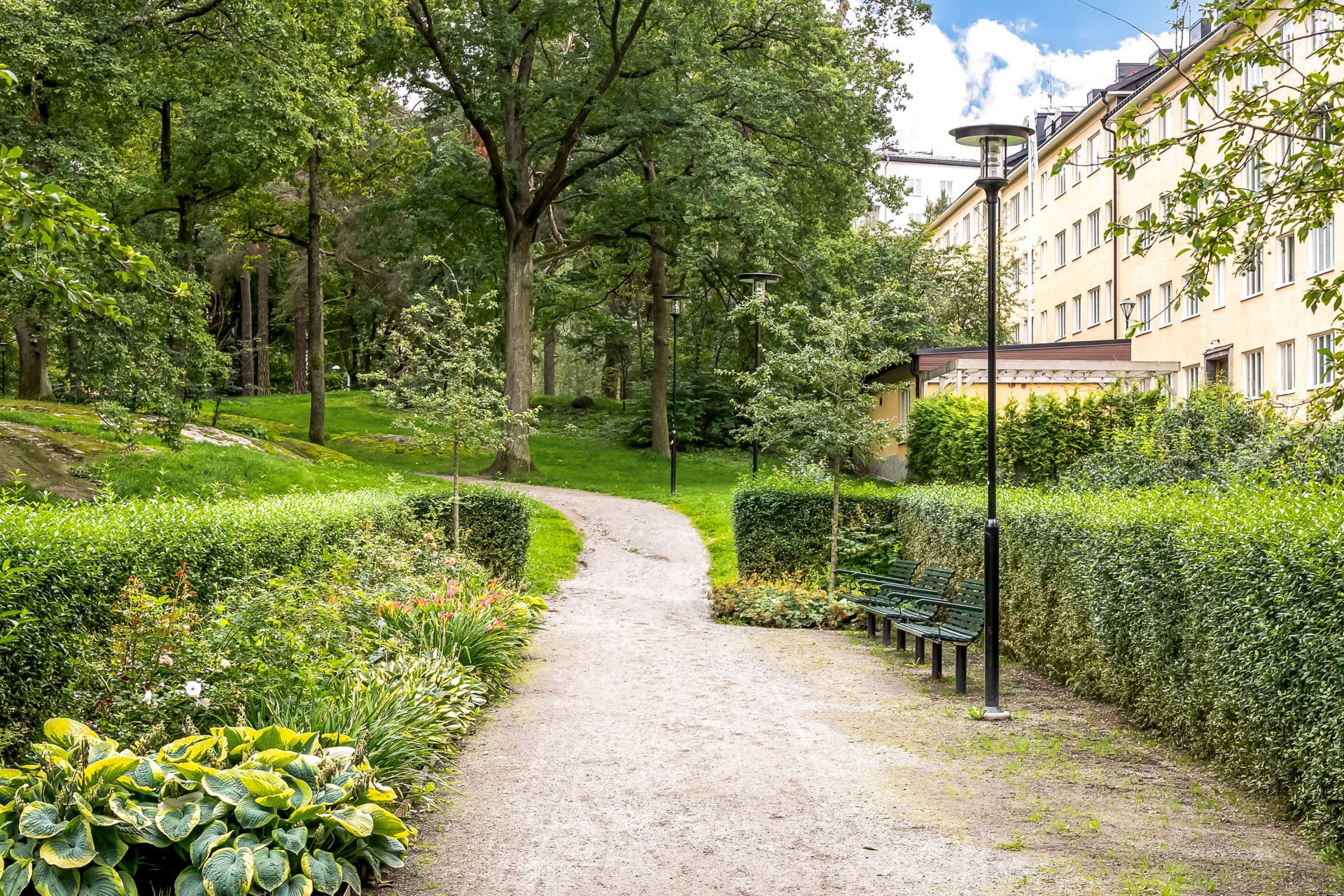 | Gemensamma utrymmen | Föreningen har barnvagnsförråd, tvättstugor, gästlägenheter, bastu och gym, snickarbod och cykelrum mm. Föreningens tvättstugor finns på: – Frödingsvägen 3 – Frödingsvägen 9 (även drop in) – Ernst Ahlgrens väg 2 (även drop in) – Ernst Ahlgrens väg 7 (även drop in) – Ernst Ahlgrens väg 10 – Vitalisvägen 4 (även drop in) – Vitalisvägen 6 – Vitalisvägen 9 (även drop in), fristående hus mittemot Vitalisvägen 7 -Cykelförråd - Finns på Vitalisvägen 4, 6 och 7, Ernst Ahlgrens Väg 5 och 10 samt Frödingsvägen mellan 7 och 9. Källsorteringsstation - Adlerbethsgatan 15-17 samt 19-21 Barnvagnsrum - Frödingsvägen 7 |