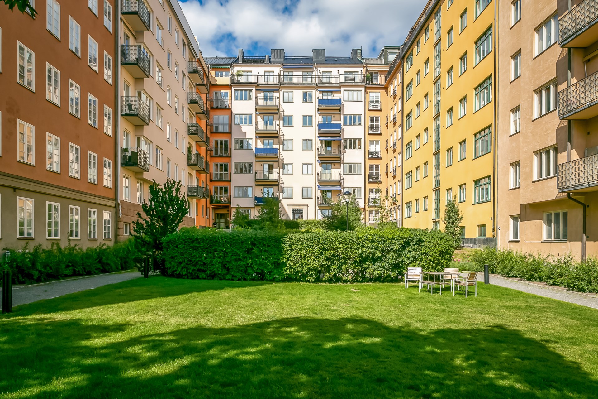 | Gemensamma utrymmen | Tvättstuga Cykelförråd Barnvagnsförråd Mysig och grönskande innergård |