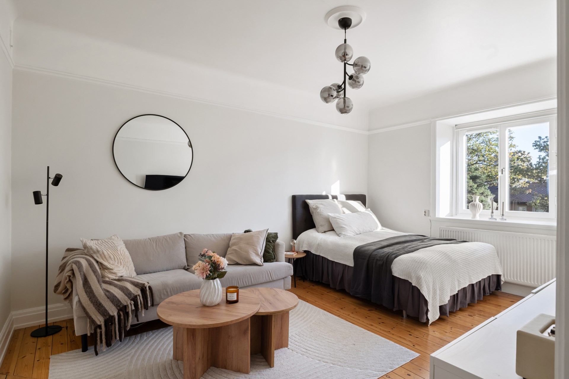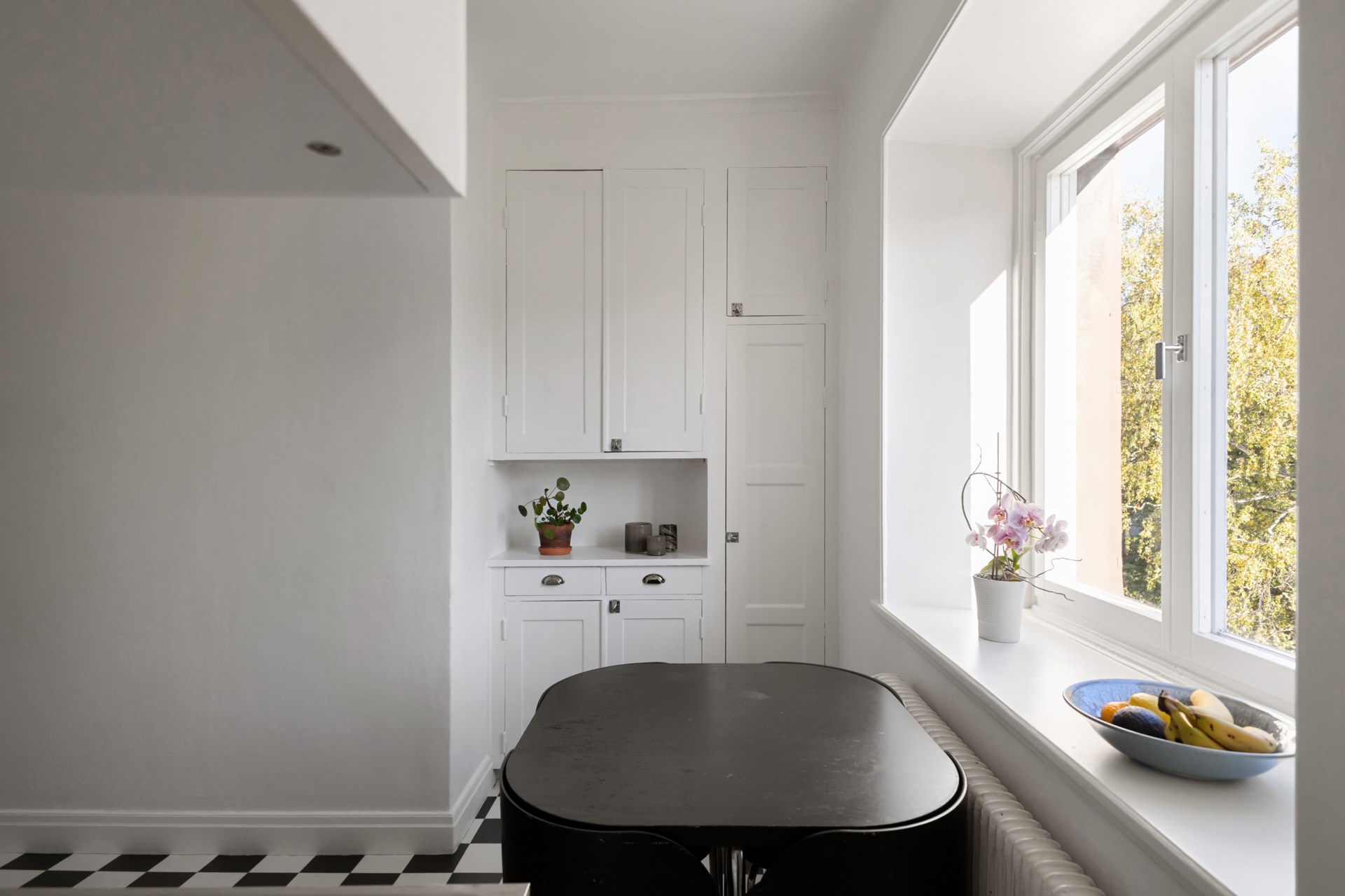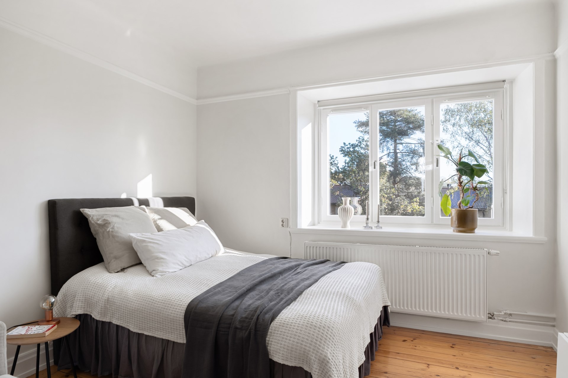 Bostaden bjuder på tidstypiska originaldetaljer såsom högt i tak, djupa fönsternischer och bevarade snickerier som skapar en varm och inbjudande atmosfär. Det stora vardagsrummet får rikligt med ljusinsläpp och har gott om plats för både soffgrupp och sänglösning. Rummet är rymligt och rofyllt, med utsikt mot en lummig grönska utan insyn. Här finns generöst med plats för dubbelsäng, nattduksbord och förvaring. Köket är charmigt och fräscht med bra arbetsytor och förvaring för den matlagningsintresserade. Badrummet är stambytt och stilrent med fina materialval och genomtänkt funktion. Den välkomnande hallen är rymlig och erbjuder utmärkta förvaringsmöjligheter direkt vid entrén.