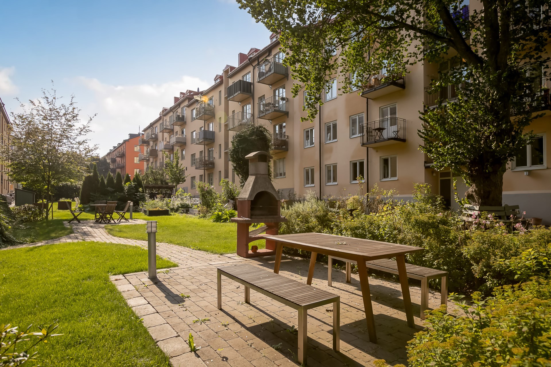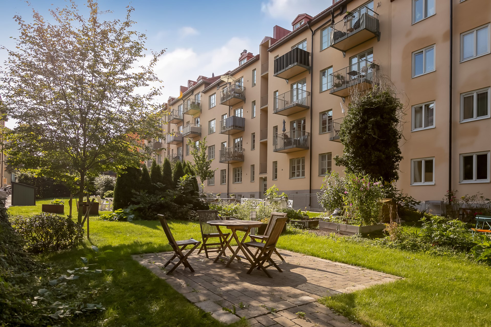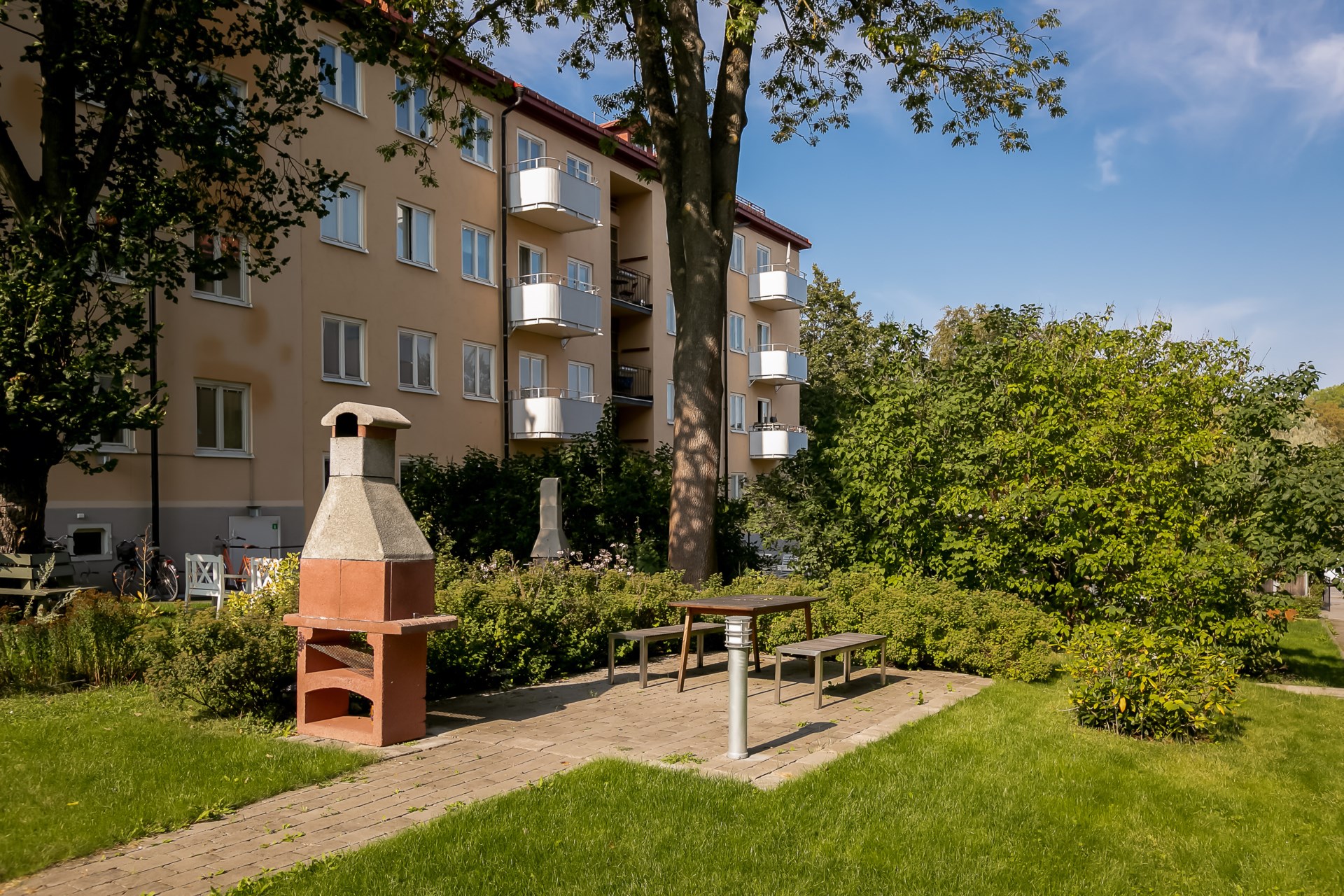| Gemensamma utrymmen | Tvättstuga samt cykelrum på källarplan. Gemensam bakgård. |