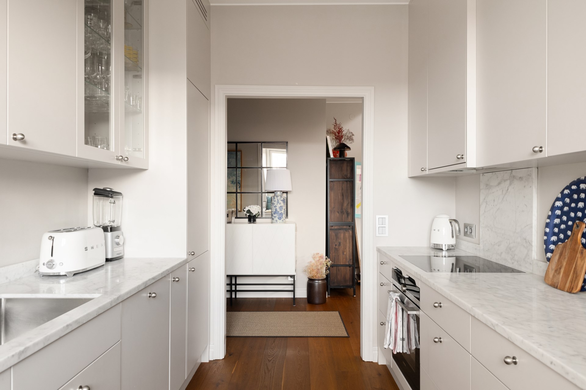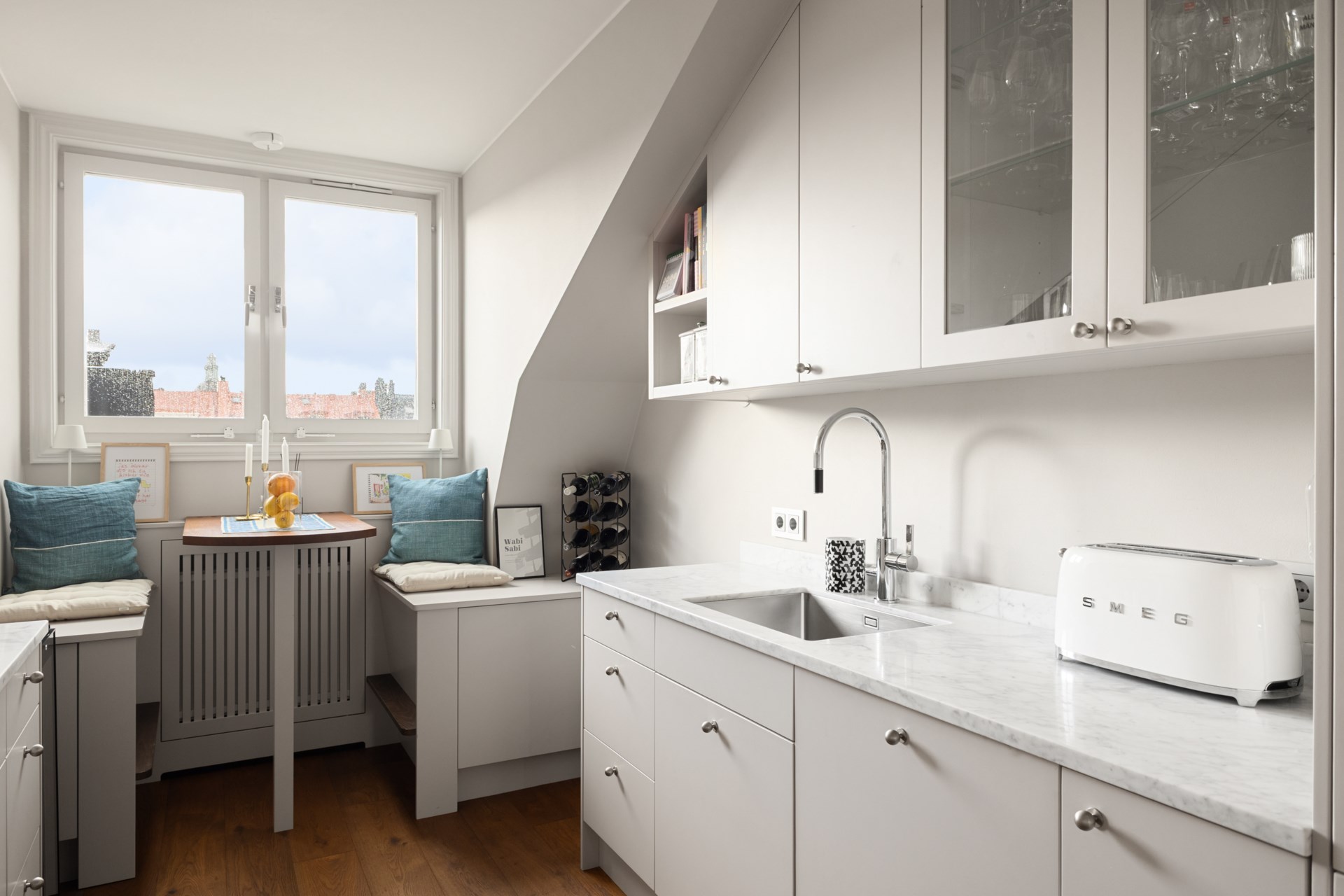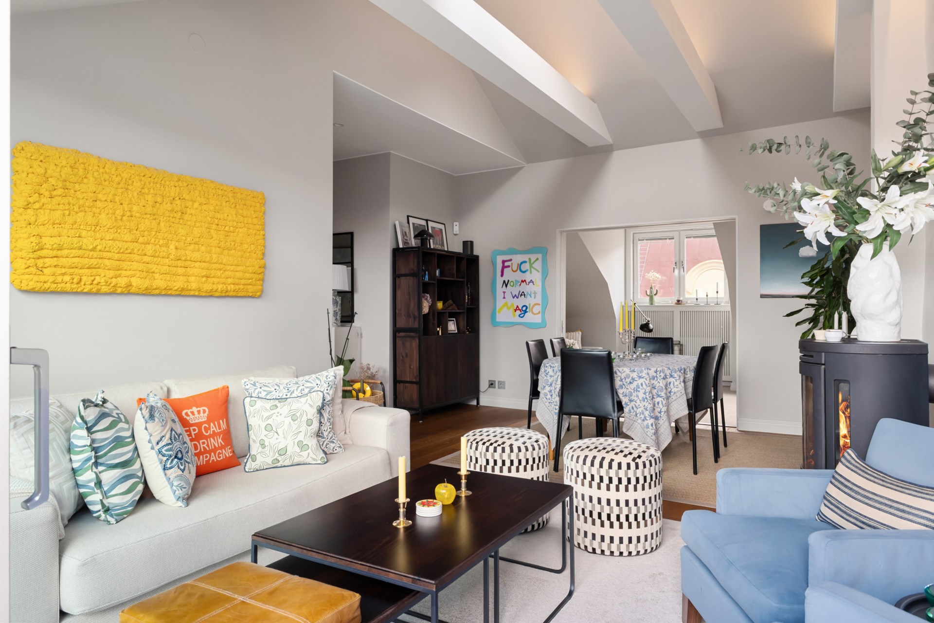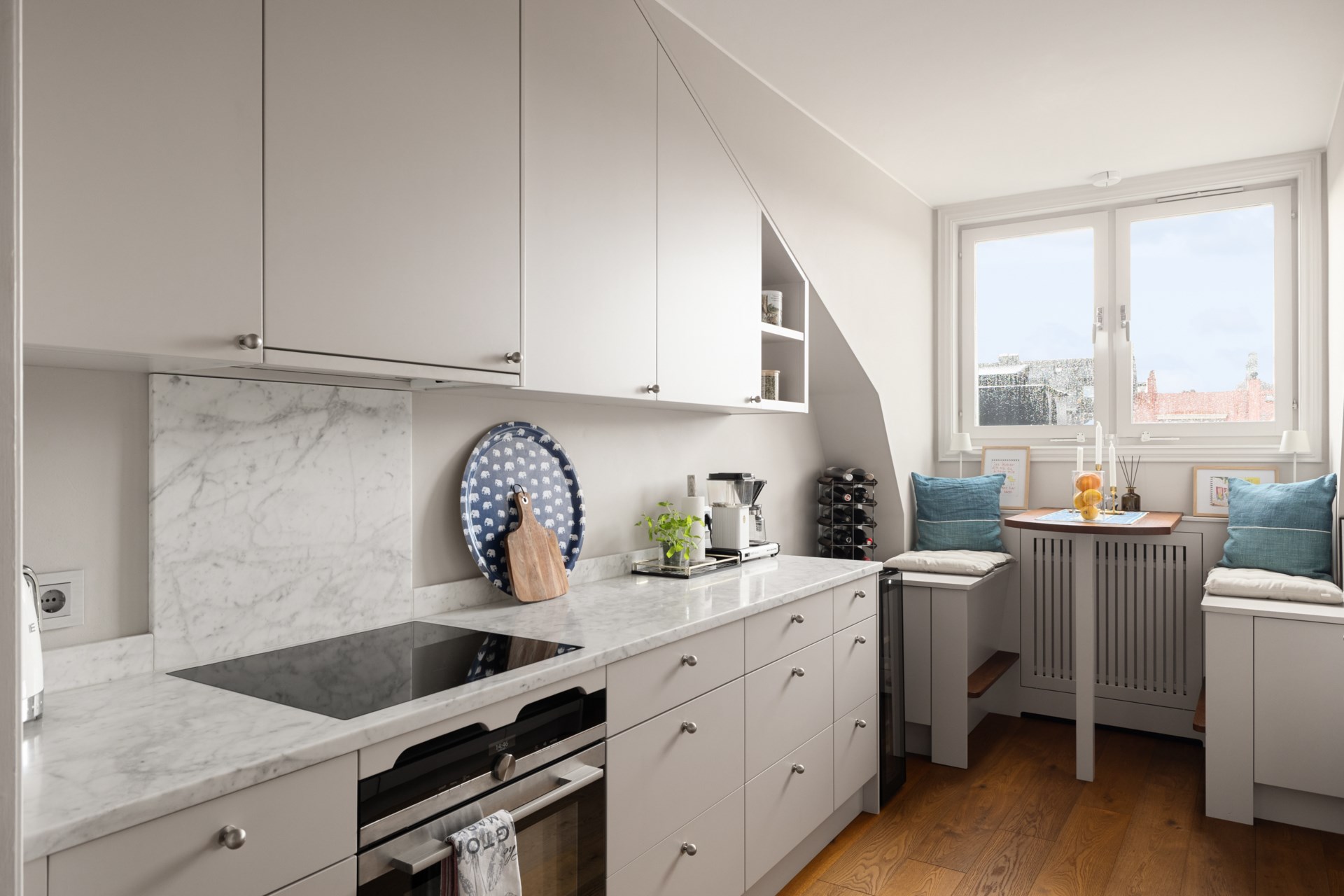 Högst upp i ett vackert sekelskifteshus på Gästrikegatan väntar ett hem med en ovanlig kombination av lugn, ljus och