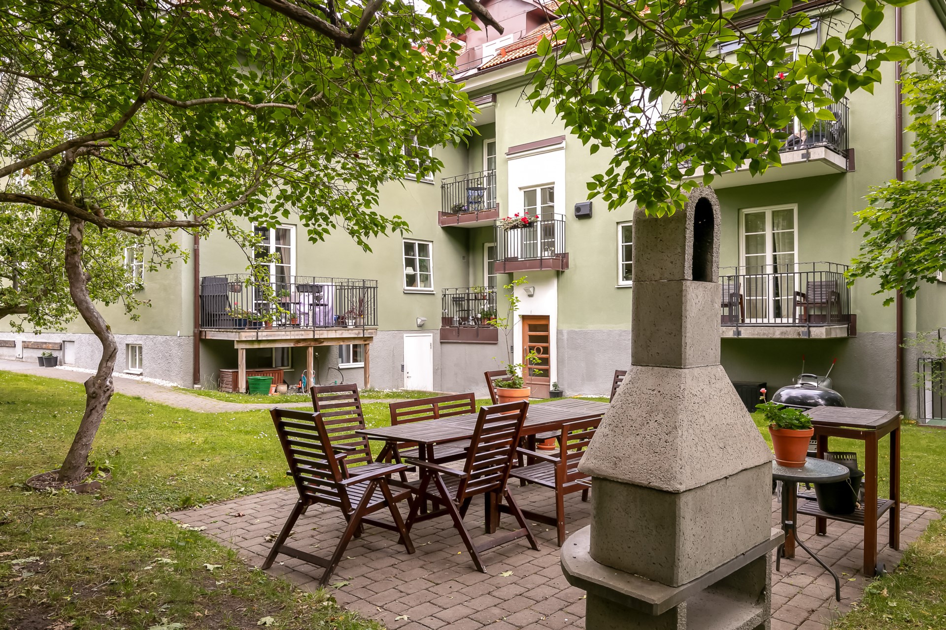 | Gemensamma utrymmen | I byggnaden finns vidare ett cykelförråd, lägenhetsförråd samt en gemensam tvättstuga. |