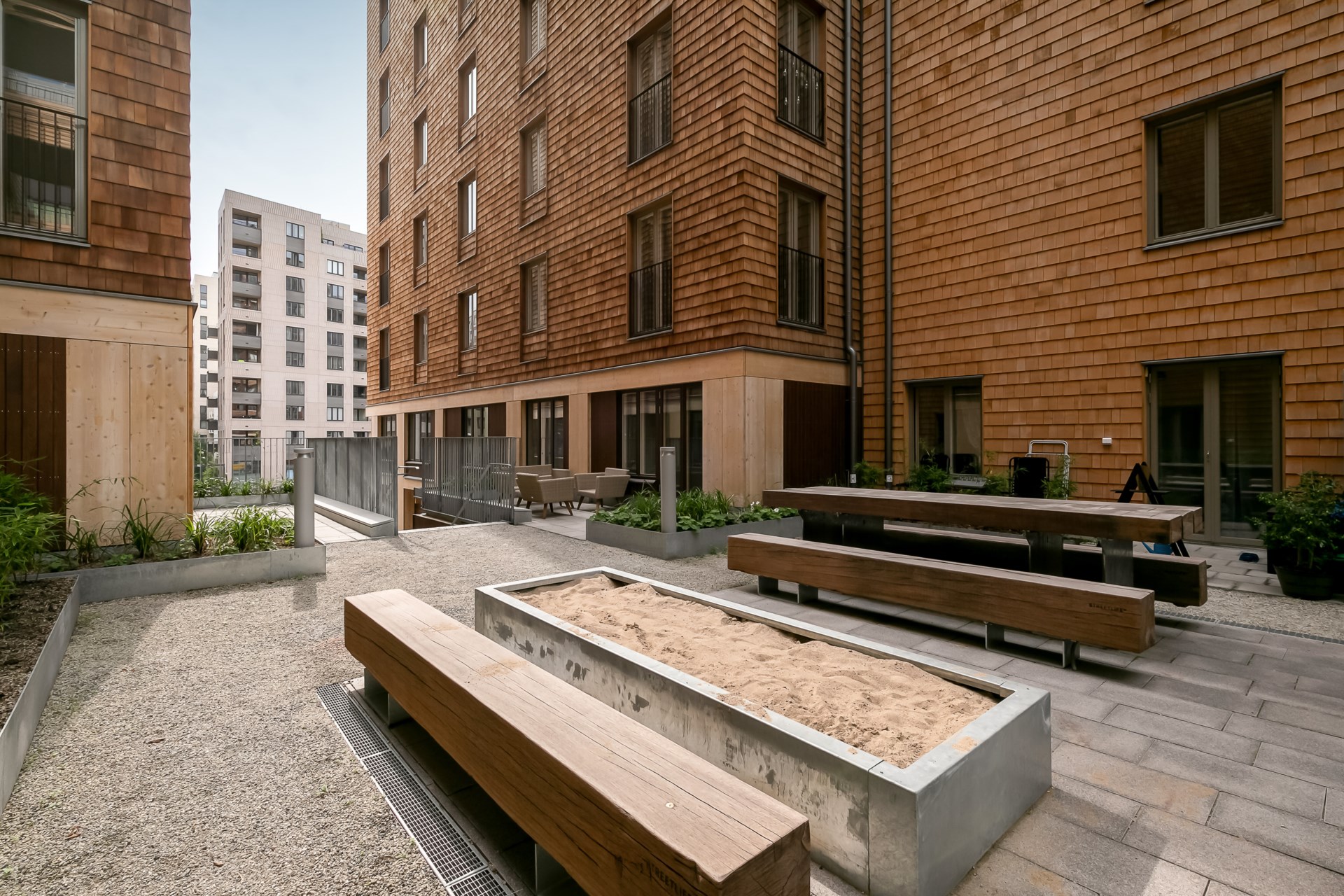 | Gemensamma utrymmen | På taket i första huset finns en gemensam takterrass att nyttja för boende. Terrassen är utrustad med utekök och sittplatser. Barnvagnsrum finns i anslutning till respektive entré. I föreningen finns cykelrum i källaren samt i utomhusställ på gården. Vid entrén mot Hagaesplanaden finns ett utrymme med 1 st eldriven lådcykel för boende i föreningen att disponera gemensamt. Cykeln ingår i cykelpool och anslutningsavgift till poolen ingår för dig som boende |