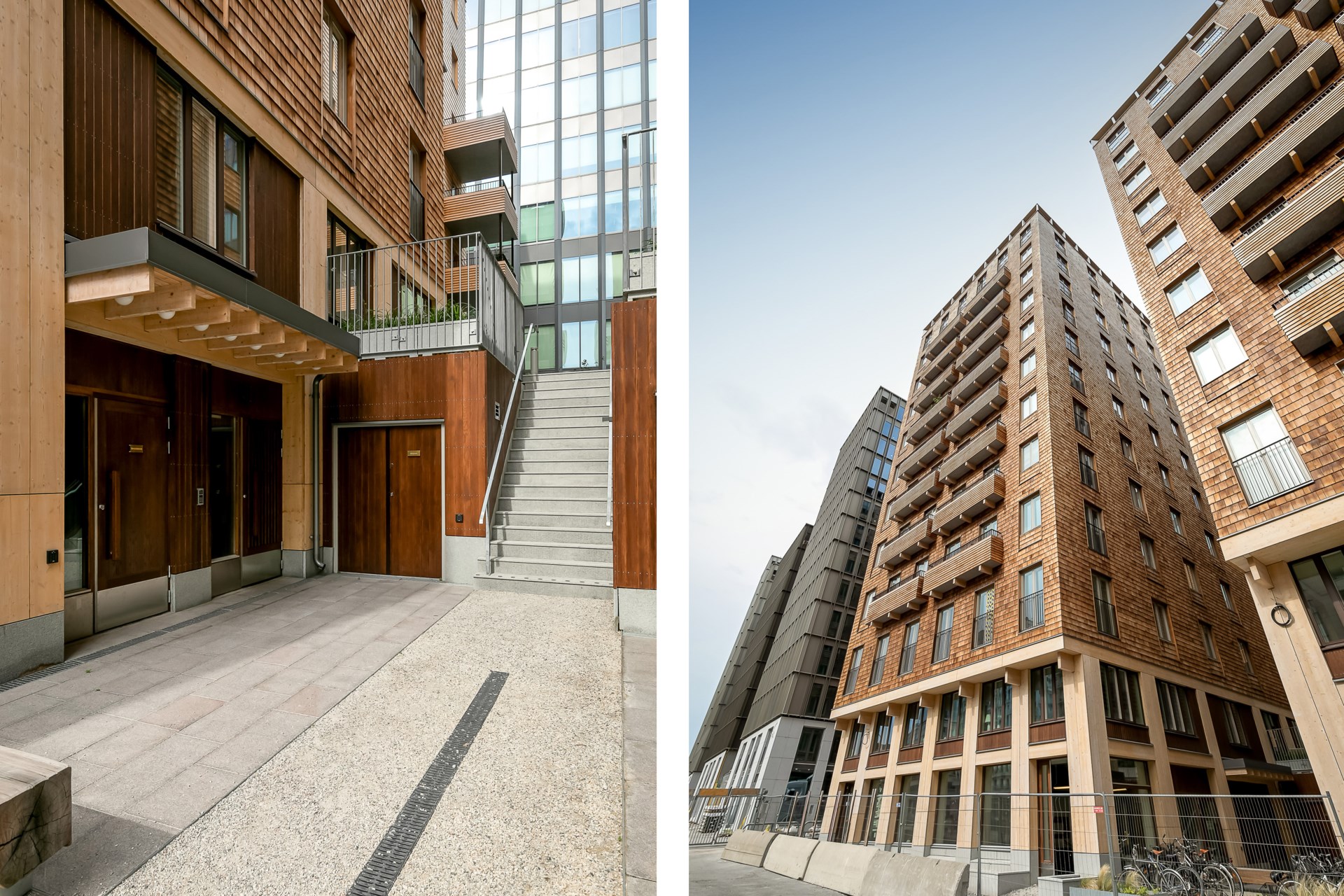 | Om föreningen | Brf Arkitraven ligger i det första av av två kvarter som omfattar projektet Cederhusen och består av 111 st bostadslägenheter fördelat på två fastighetskroppar. Den totala bostadsytan för föreningen är ca 6 713 kvm och lokalytan ca 400 kvm. Föreningen äger marken som har en areal om 1 347 kvm. Cederhusen i Hagastaden kommer att bli Stockholm första stora flerbostadshus i massivträ, vilket blir ett av de största trähusprojekten i världen i innerstadsmiljö. Cederhusen är ännu mer, det är ett unikt boende att leva i. En passion för att skapa ett modernt, vackert boende, som både tar hänsyn till människan och miljön. Med tillgång till balkonger, ordentlig förvaring och smarta, genomtänkta och fina detaljer ska ni kunna ses och njuta av livet. Cederhusen är ett äkta trähus som står stadigt på en grund av betong. Cederhusens unika arkitektur med fyra torn, 10-13 våningar bildar en bred och hög front i söderläge mot Norra Stationsparken, nära den nya tunnelbanan i Hagastaden. Bostäderna uppförs även som den slutliga etappen av Hagastadens västra område, vilket innebär att det mesta av närområdet kommer vara på plats vid inflyttning. |