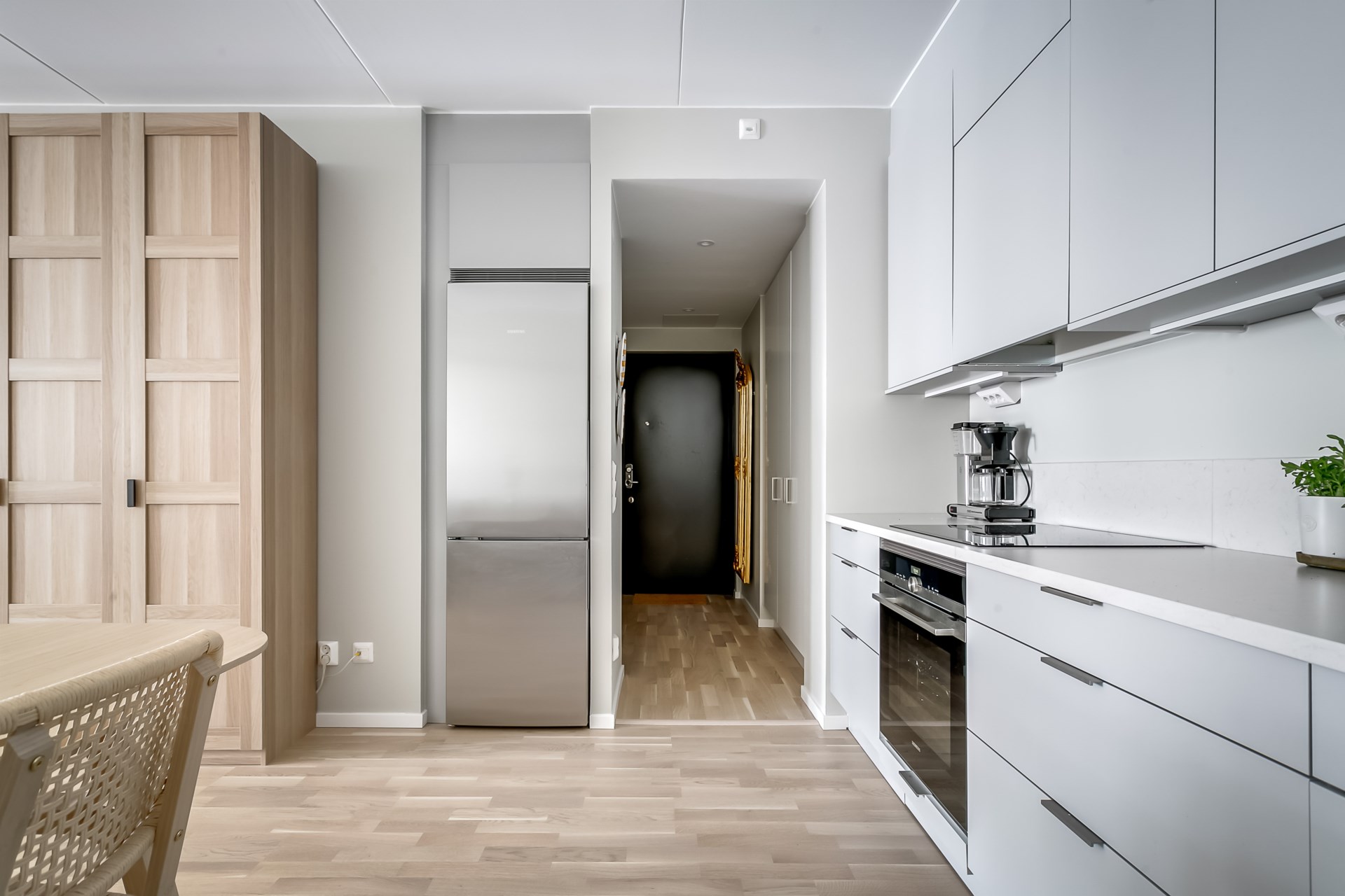 Varmt välkomna till denna välplanerade tvåa med perfekt planlösning och stilrena materialval! Denna bostad andas ljus, öppenhet och effektivitet, vilket du upplever redan vid entrén. I och med att byggnaden uppfördes år 2023 möts du av material och utrustning i toppskick. Rikligt med förvaringsutrymmen finnes bakom snygga ytskikt på