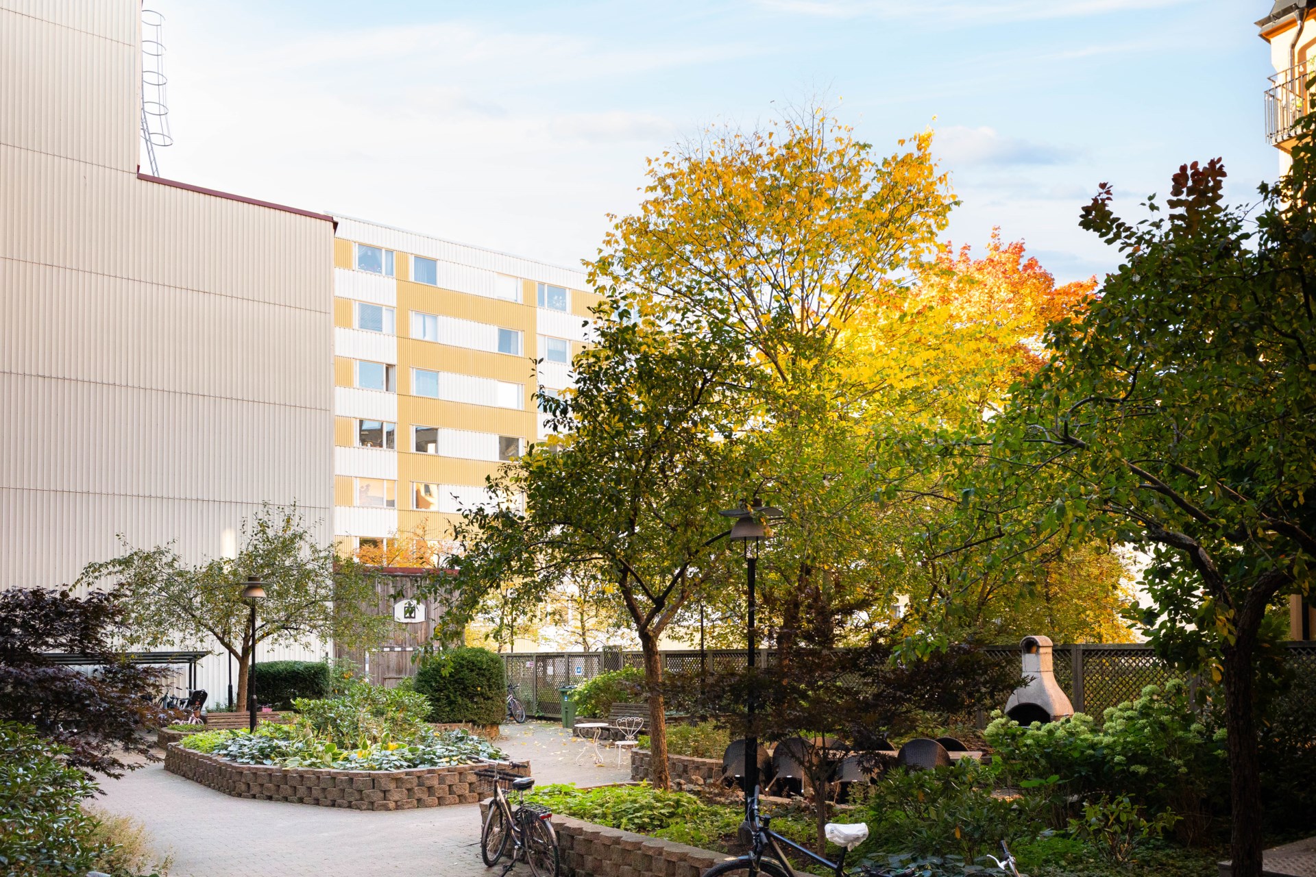 | Gemensamma utrymmen | Tvättstuga i källaren (2 tvättmaskiner, 1 torktumlare, 2 torkskåp, 1 mangel). Styrelserum. Bastu (för tillfället avstängd 2025-10-27). |