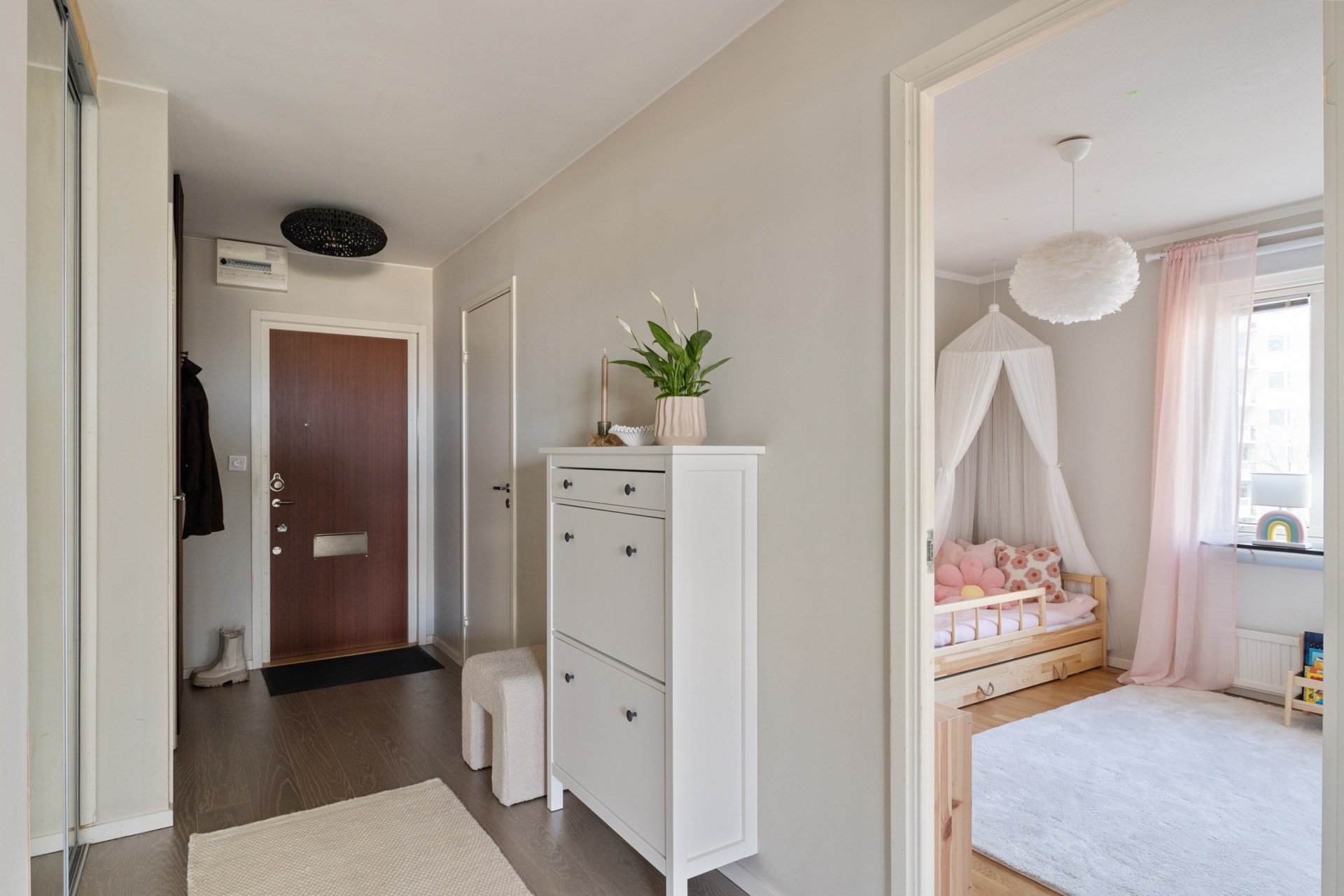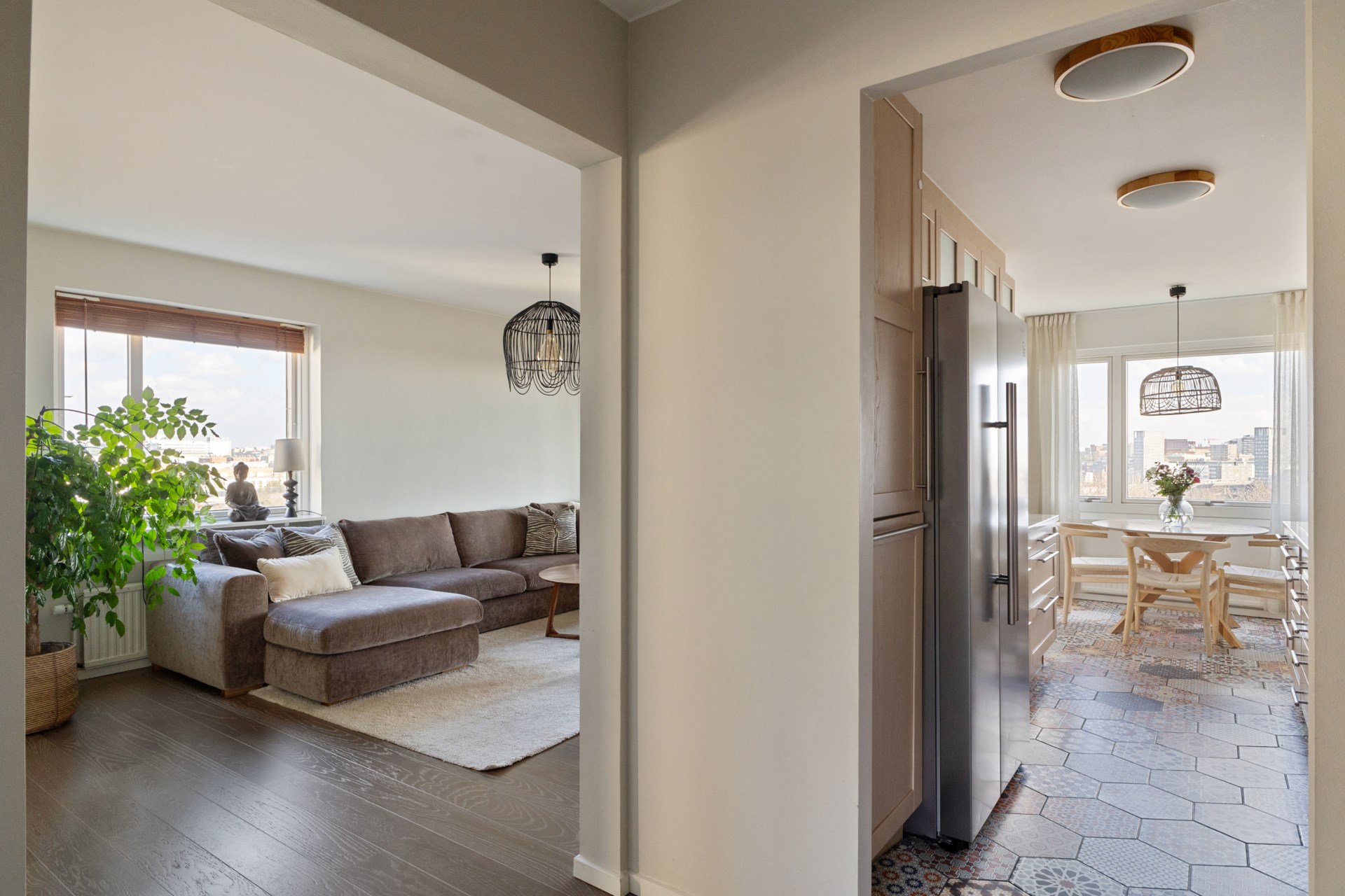 Varmt välkommen till denna smakfulla trea högt upp i de populära punkthusen på Johan Enbergs väg. Här bor du