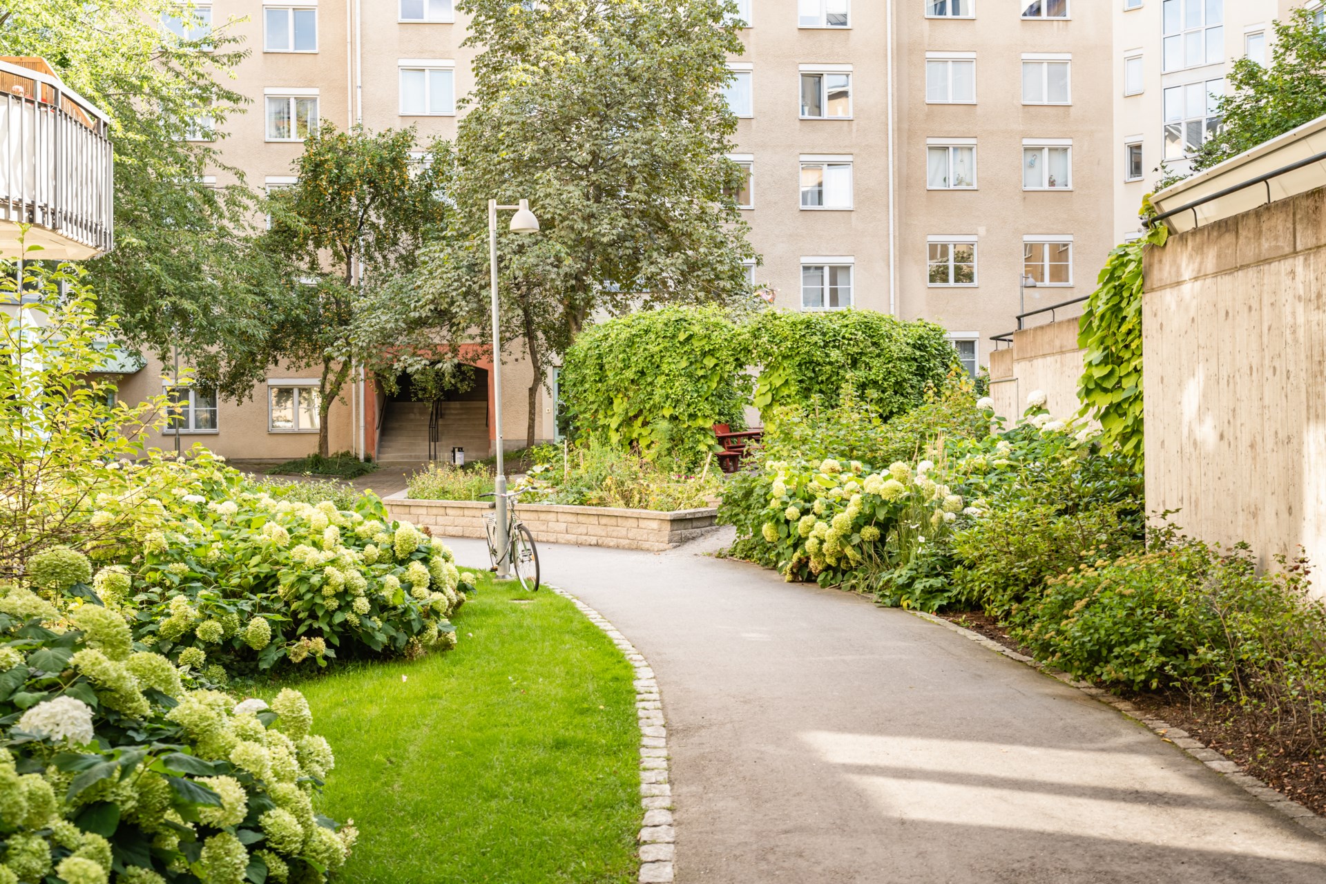 | Gemensamma utrymmen | I fastigheterna finns gemensamma utrymmen som tvättstugor (3 st), gästlägenheter, gym, bastu, pingis- och kuddrum. Ett boende på Magnus Ladulåsgatan 9 ger möjlighet till medlemskap i Kollektivhuset Södra Station (länk) i grannhuset på Magnus Ladulåsgatan 19 där matlag exempelvis arrangerar gemensamma middagar 4 dagar i veckan. |