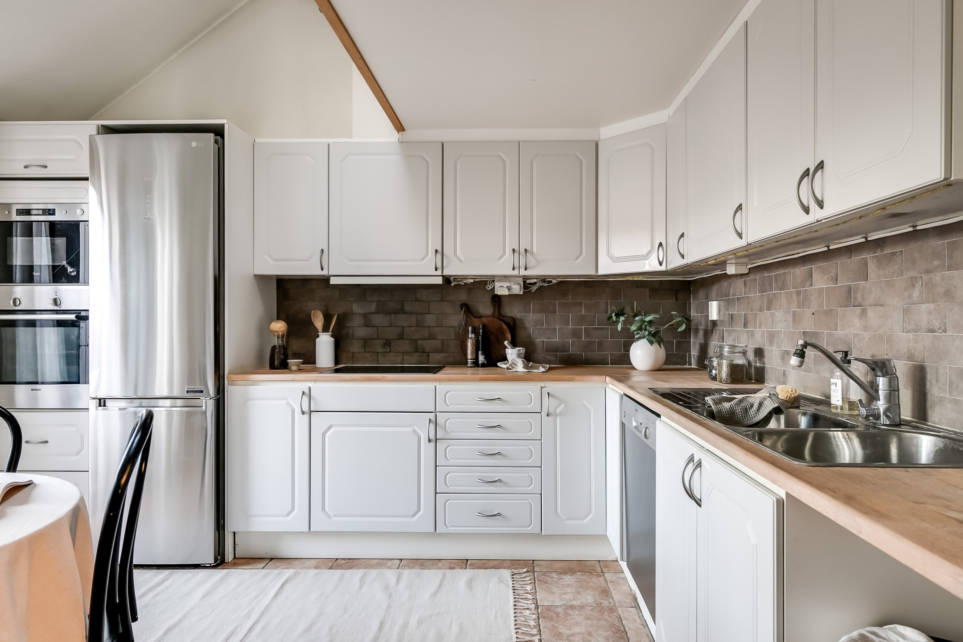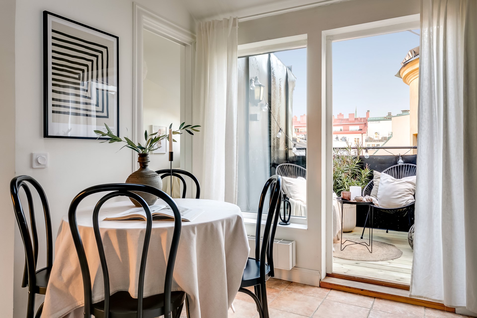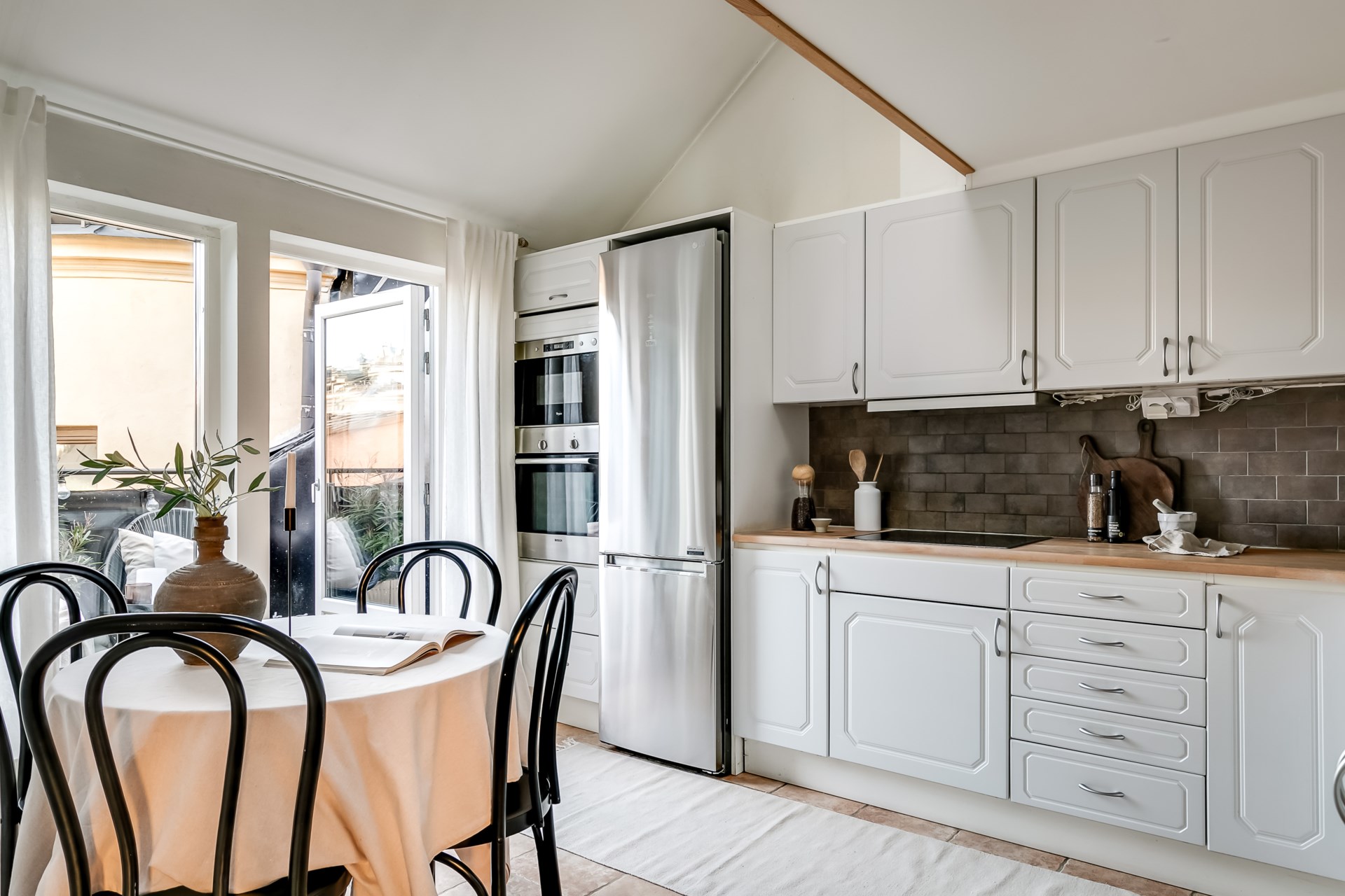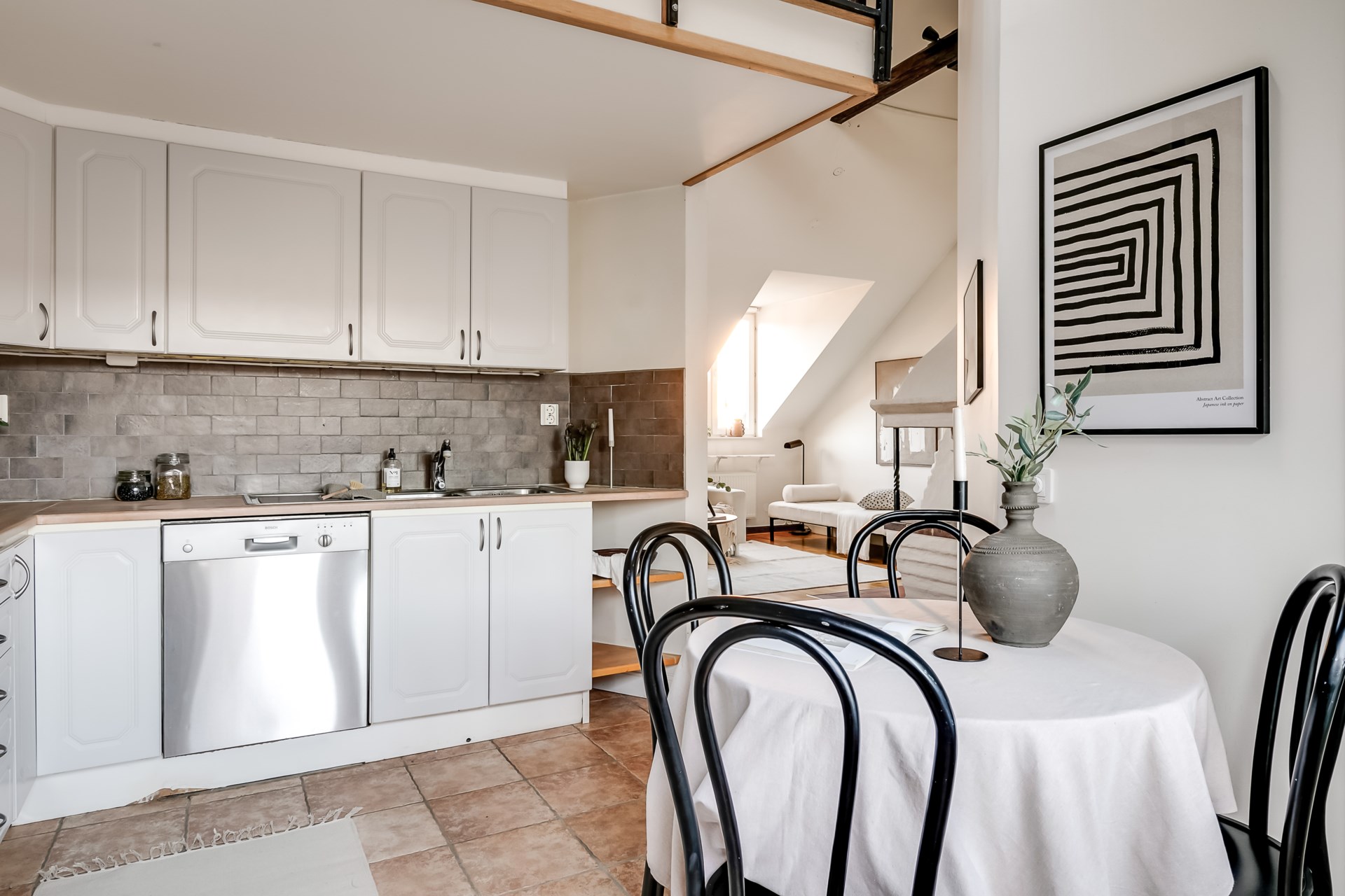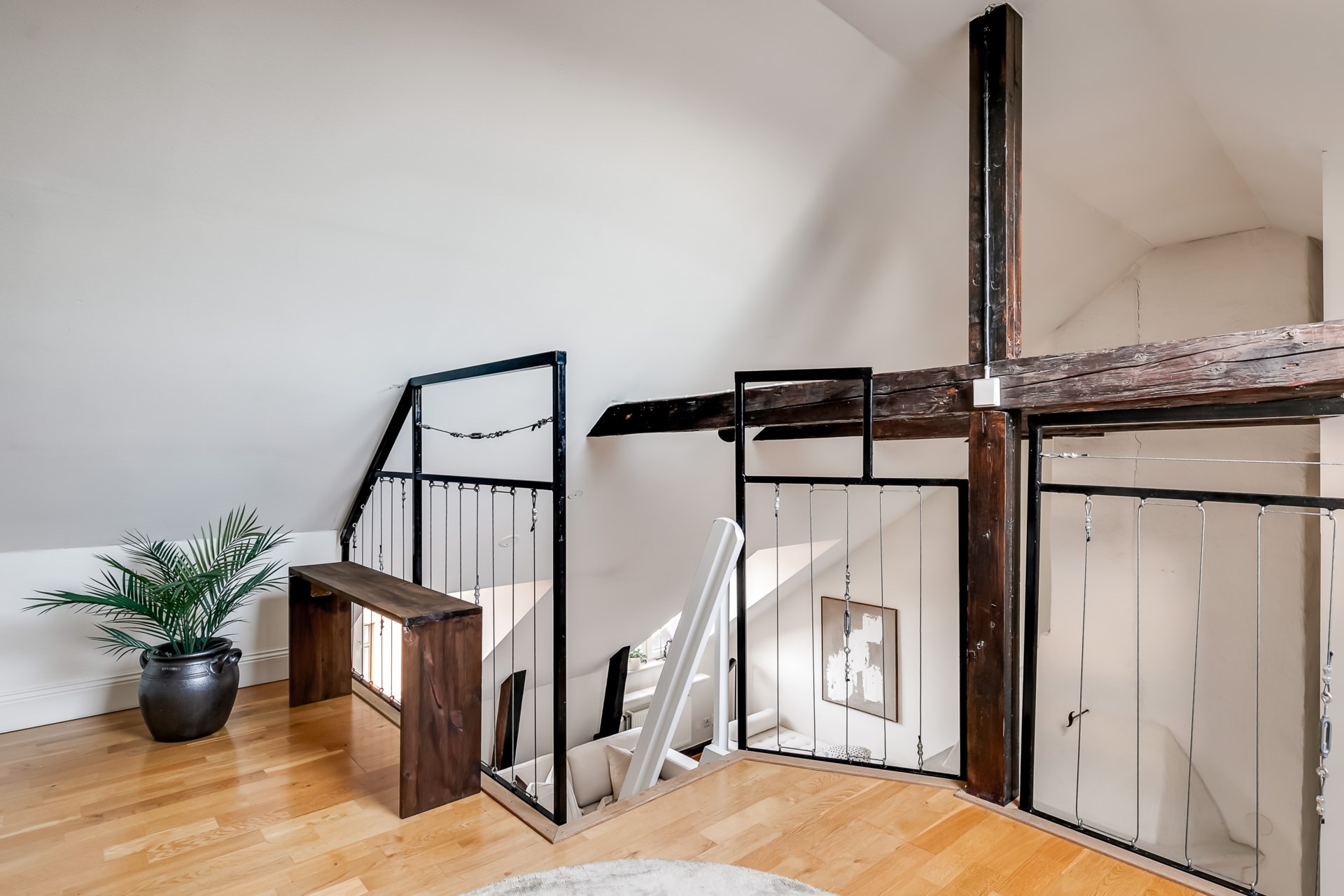 Charmig etagevindsvåning med terrass, öppen spis och takbjälkar – ett hem utöver det vanliga!