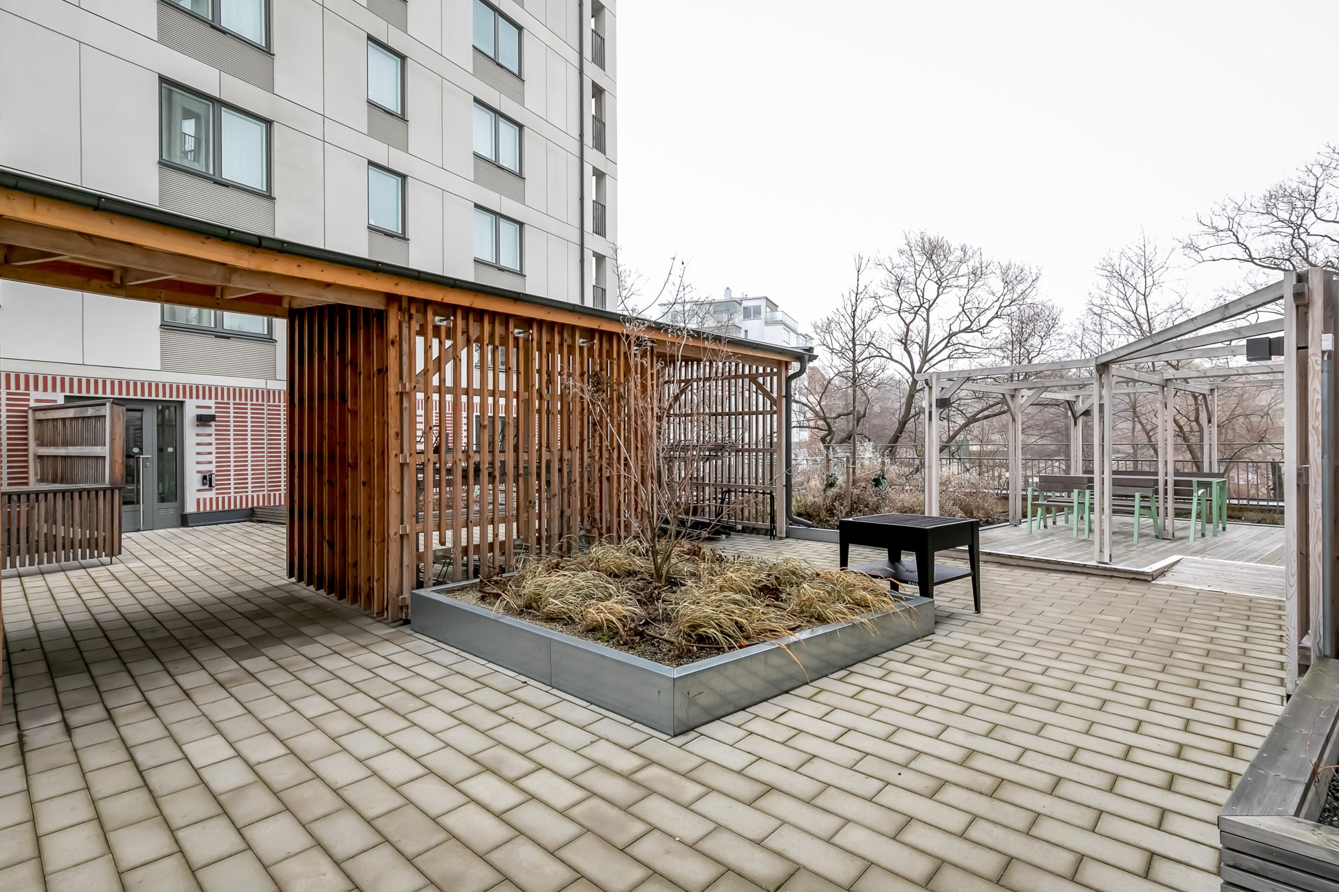 | Gemensamma utrymmen | - Två innergårdar - Garage - Cykel- och barnvagsrum - Två miljörum - Förrådsutrymmen |