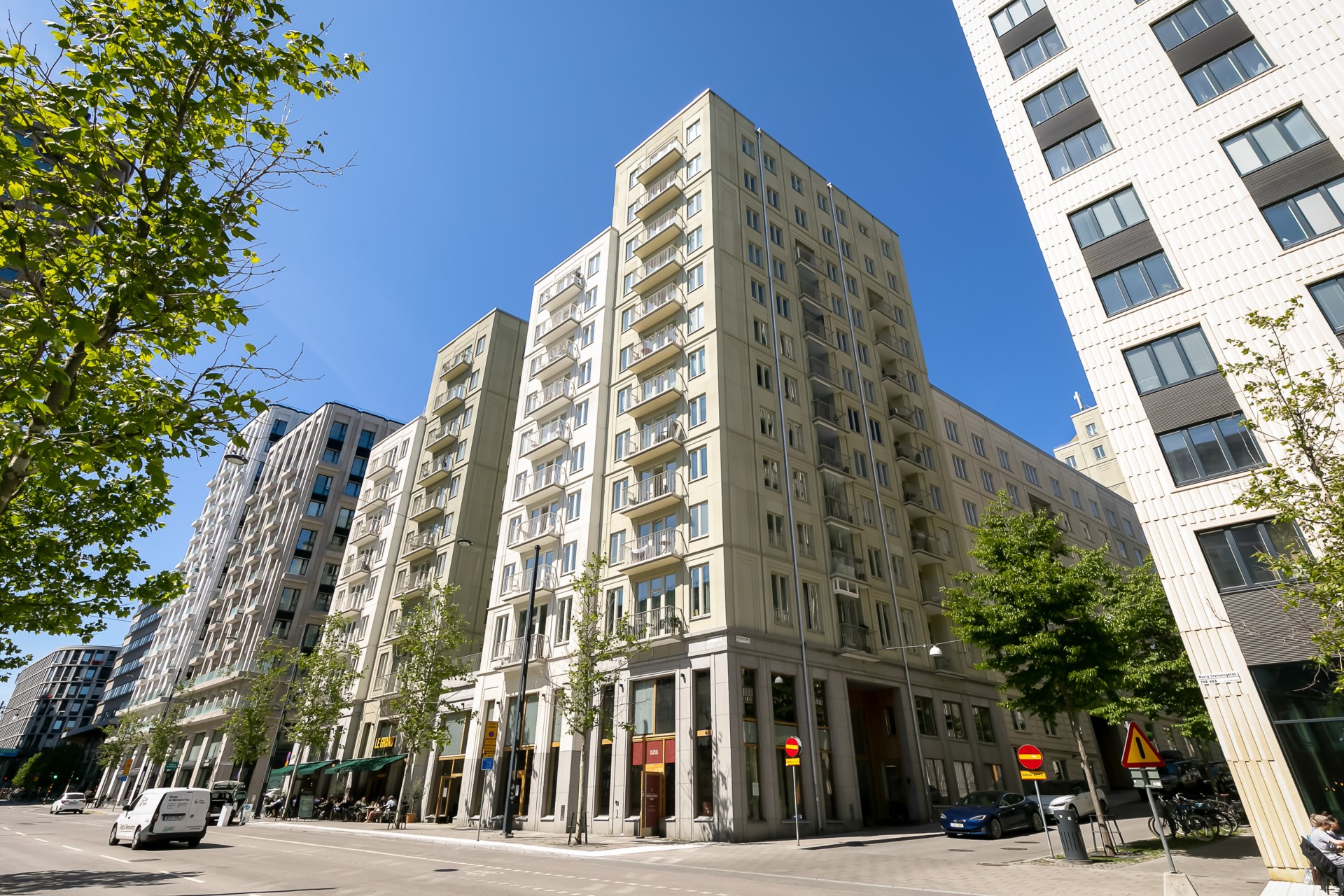 | Om föreningen | Bostadsrättsföreningen består av 205 stilrena lägenheter, de flesta med fina balkonger eller härliga terrasser. Lägenheterna färdigställdes 2018 och 2019. Föreningen har 10 hyreslokaler och en förskola Luna (24 bostadsrättslokaler, Stockholms Stad). |
