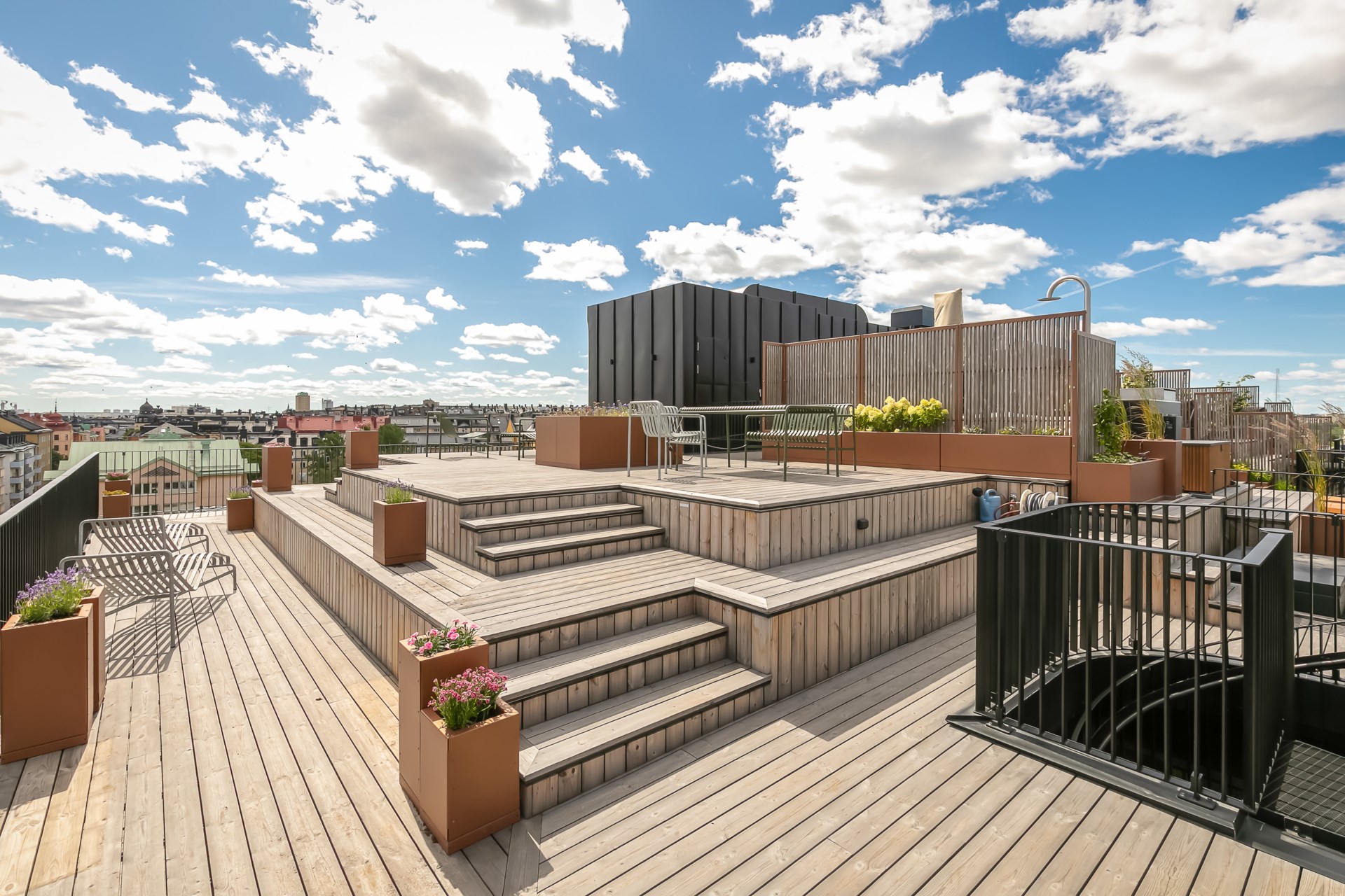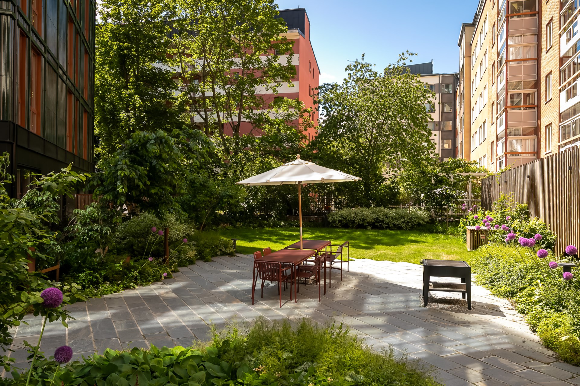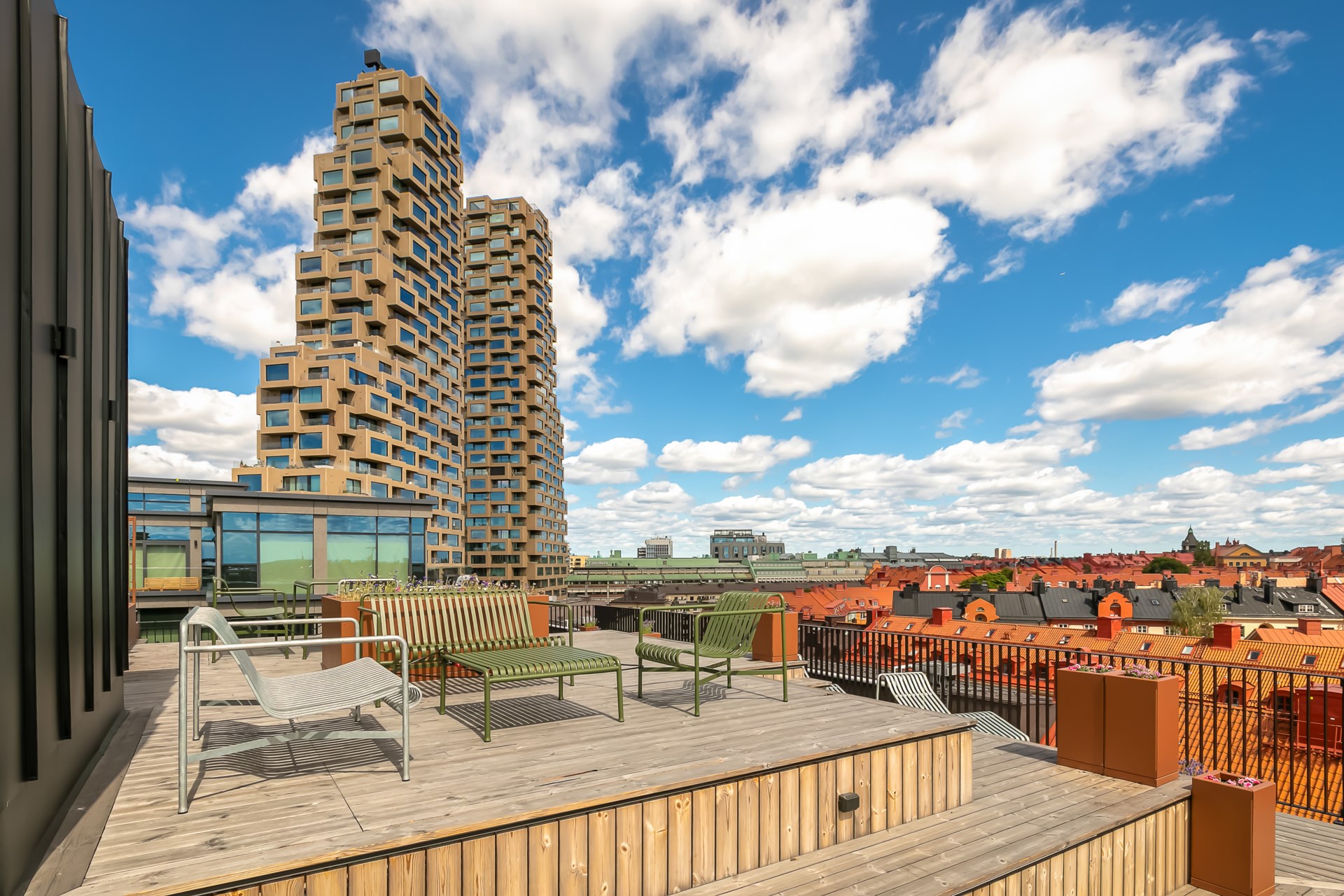 | Gemensamma utrymmen | Takterrass, tvättstuga, innergård, cykelförråd, barnvagnsrum och källsortering. |