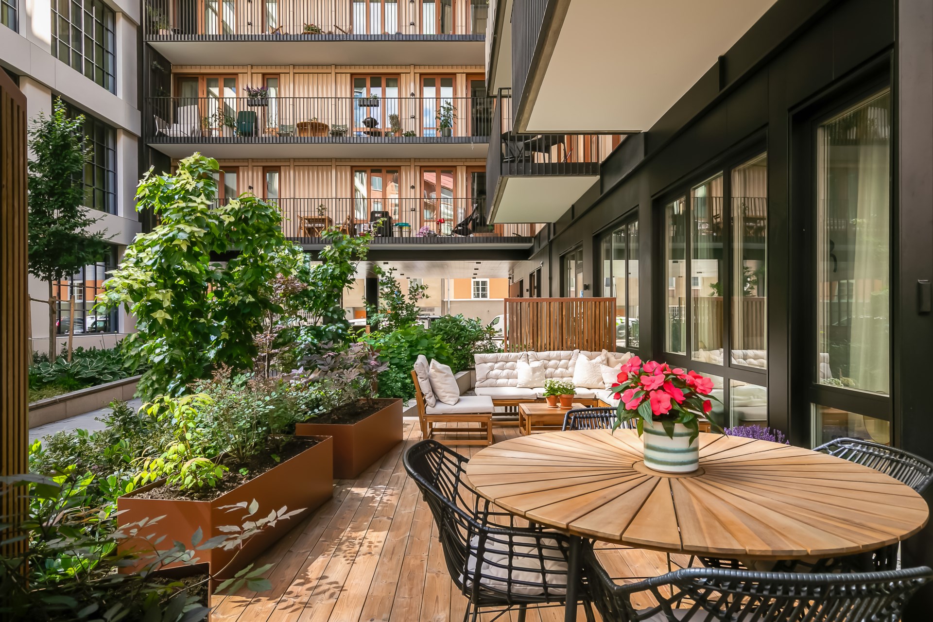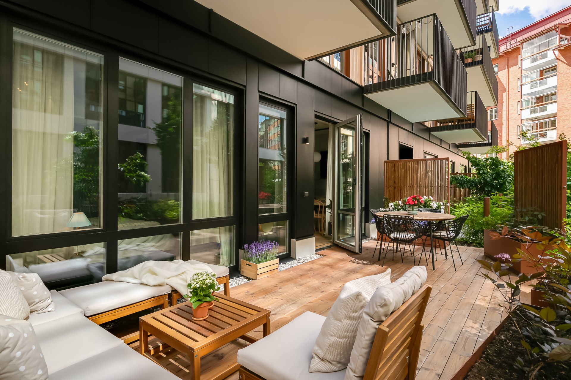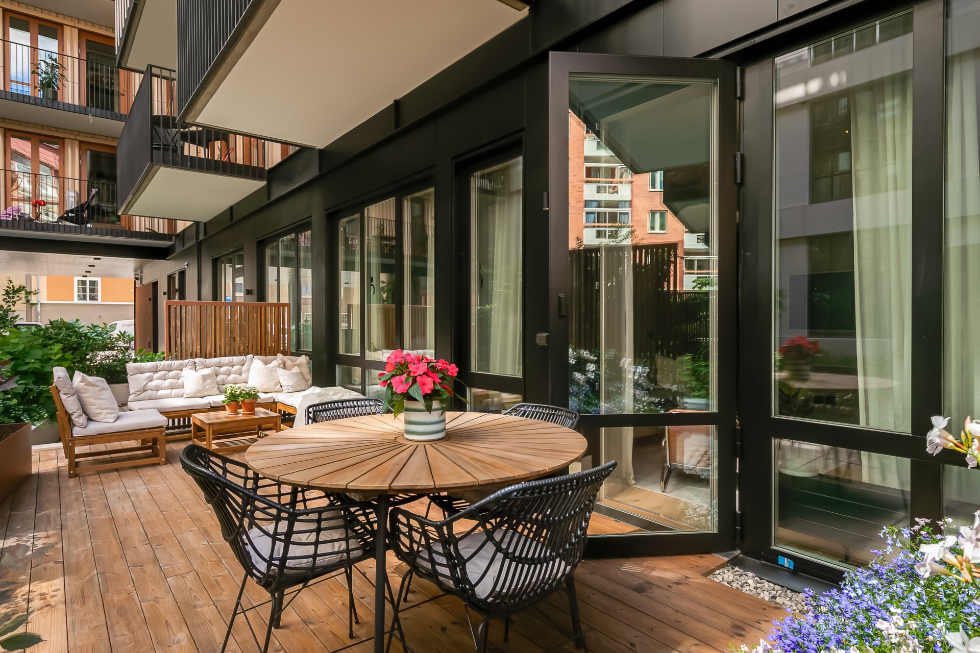 | Gemensamma utrymmen | Takterrass, tvättstuga, innergård, cykelförråd, barnvagnsrum och källsortering. |