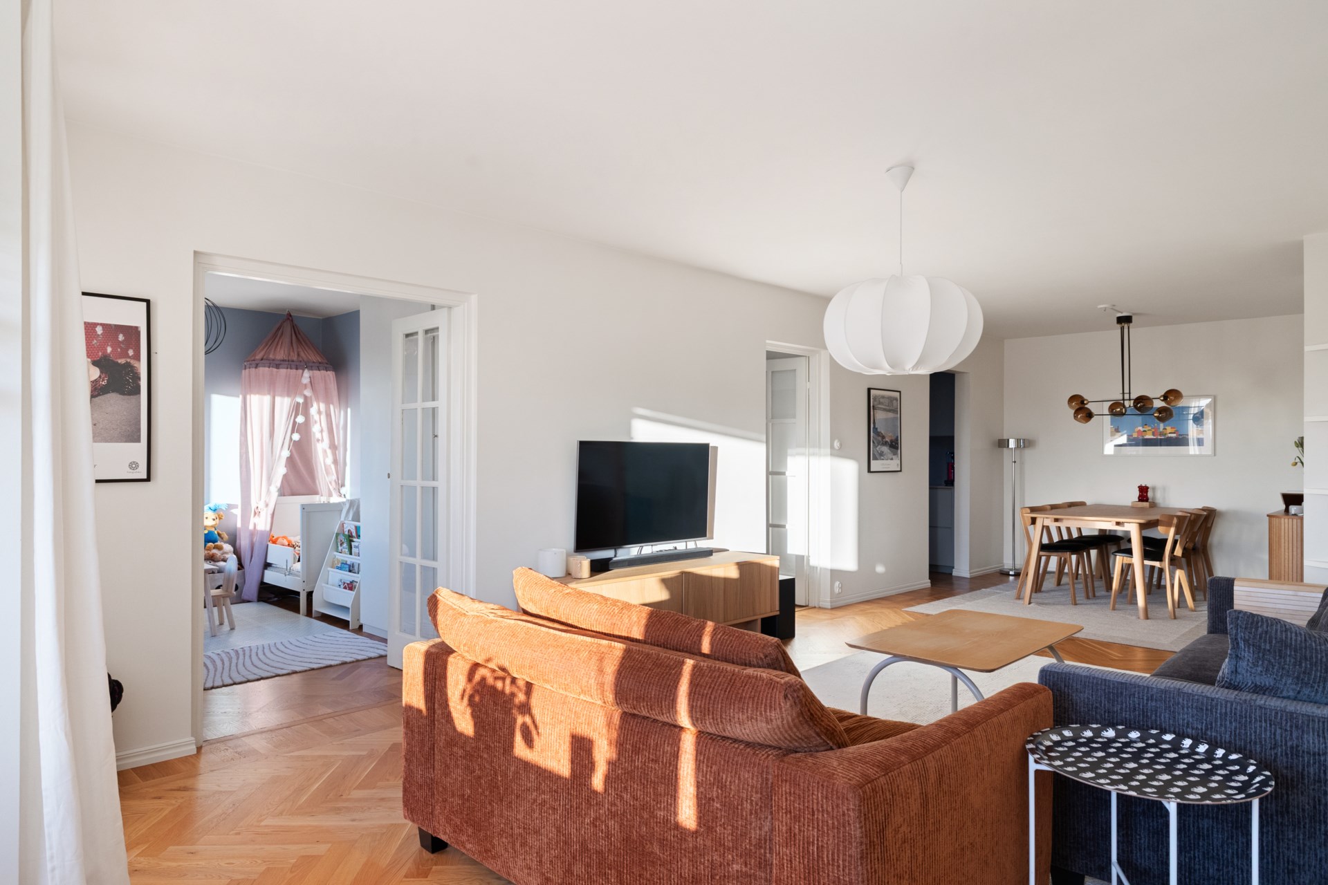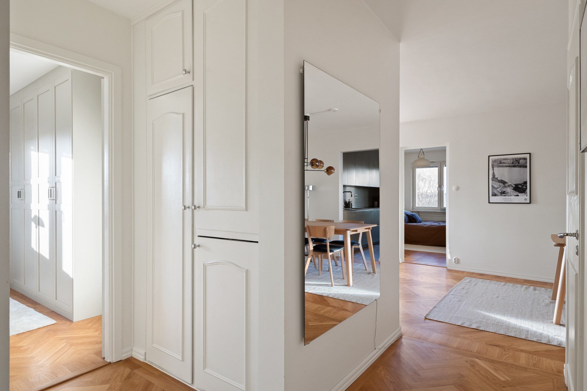 Totalrenoverad hörn 4:a med fantastiskt läge på Nybodagatan 7! Här bor du i ett högt läge med en välplanerad planlösning och påkostade materialval som genomsyrar hela bostaden med bl.a genomgående fiskbensparkett, fräscha ytskikt, topprenoverat kök och stilrent