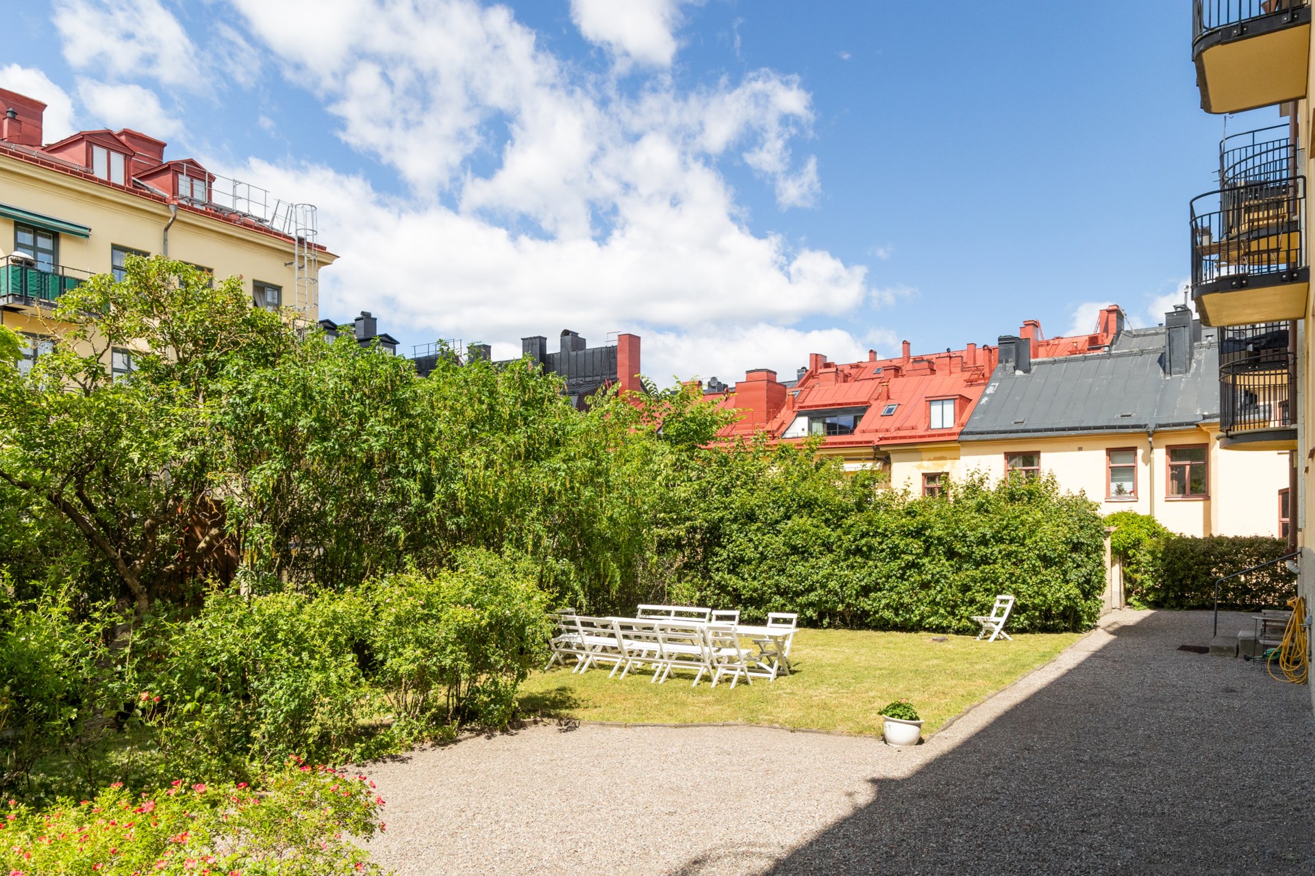 | Renoveringar | Utförda renoveringar: 1985: Stambyte 1985: Byte av elstigar 1997: Fasadrenovering 2005: Fasadrenovering 2010: Balkonger byggdes 2011: Nytt låssystem och målning av entréer. 2013: Stamspolning 2014: Säkerhetsdörrar till samtliga lägenheter samt OVK-besiktning 2015: Ombyggnation av tvättstugor, föreningslokal, gästrum samt uppgradering av fiber 2016: Byggnation av 23 vindslägenheter, installation av hiss i gårdshusen, renovering av hissarna i gathusen, fönsterrenovering samt renovering av samtliga ytterportar mot gatan 2017: Renovering av samtliga entréer, trapphus och bygge av nya tak samt ny UC i fastigheten Räven 2018: Stamspolning 2019: Renovering av miljörum och införande av matavfall samt uppgradering av trädgårdar och uteplatser 2020: Renovering av medlemmars balkonger, vädringsbalkonger, brandskyddsinventering och åtgärder samt armbågskontakter och kamerabevakning 2021: Byte av UC i fastigheten Bävern och OVK-besiktning 2023: Stamspolning 2024: Utredning stammar Planerade renoveringar: 2027: Stambyte/relining. Övrigt: Överlåtelse- samt pantsättningsavgift tas ut enligt stadgar. Uppgifterna i denna objektsbeskrivning är grundade på av säljaren och av berörd förening lämnad information. Köpare/spekulanter uppmanas att kontrollera dessa uppgifter med föreningen rörande kommande renoveringar och eventuella avgiftsförändringar. Köpare/spekulanter är medvetna om att bostaden köpes i befintligt skick och uppmanas att undersöka bostaden ordentligt. Köparen uppmanas att kontrollera bostadens bo- och biarea om denna är väsentlig för köparen. Observera att nedtagning av väggar och/ eller väsentliga förändringar och ingrepp i bärande konstruktioner och ändring av ledningar för avlopp, värme, gas eller vatten av en lägenhet är alltid en fråga för föreningens styrelse att ta ställning till i varje enskilt fall. Detta gäller även om förändringen inte medför risker för byggnadens konstruktion. Köpare uppmanas även att kontrollera eventuella byggplaner o.s.v. i området om detta är av betydelse för köparen. |