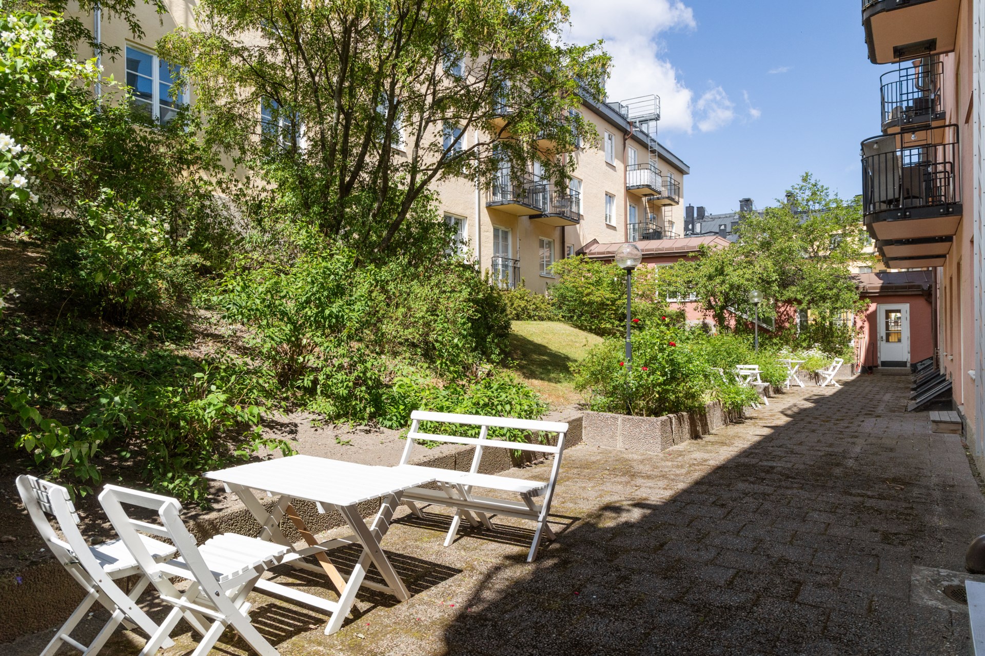 | Gemensamma utrymmen | Tvättstuga, Torkrum, Bastu, Festlokal, Samlingslokal, Gästrum, Cykelförråd. |