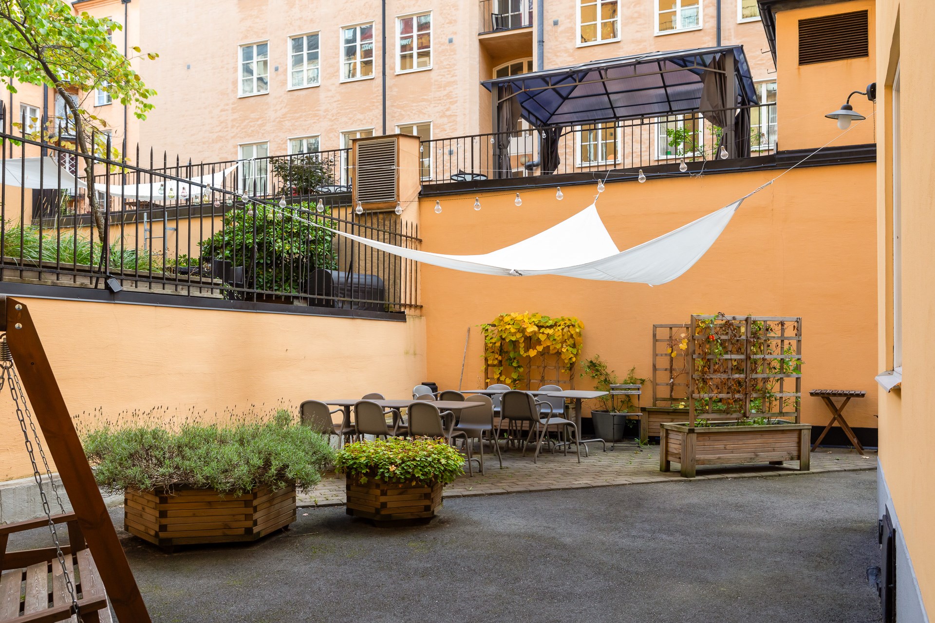 | Gemensamma utrymmen | Tvättstuga, innergård med cykelställ. |