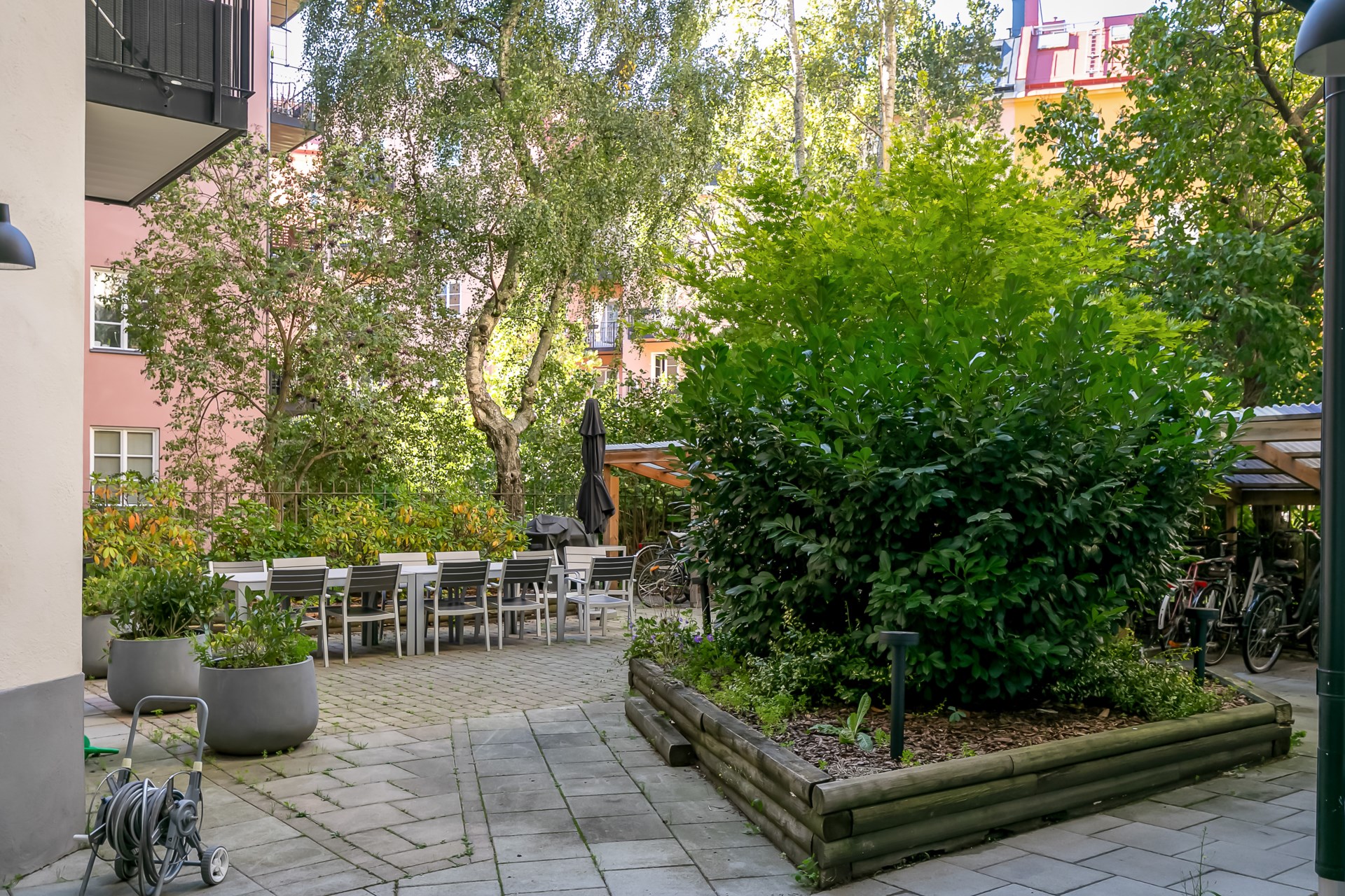 | Gemensamma utrymmen | Tvättstuga och grovsoprum/återvinningsrum, samt innergård med utemöbler och grill. |