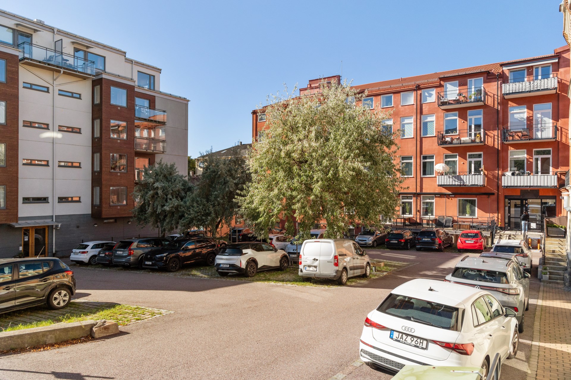 | Parkering | Föreningen förfogar över 60 parkeringsplaster, både inne och ute. 20 garageplatser, 38 utomhus p-platser och 2 MC-platser (i garaget). Utomhusparkering för medlemmar kostar 700 kr per månad (+ 500 kr admin avgift som betalas en gång, samt prisindex som just nu ligger på 150 kr/mån) medan inomhusparkering för medlemmar kostar 1600 kr per månad (+ 500 kr admin avgift som betalas en gång + 550 kr fjärrkontroll till garaget som betalas en gång; ska lämnas tillbaka vid uppsägning). För närvarande en kortare kö på parkeringsplatser enligt mail från styrelsen 2025-09-09. Kommer dock ses över då det är flera externa som hyr i nuvarande stund. |