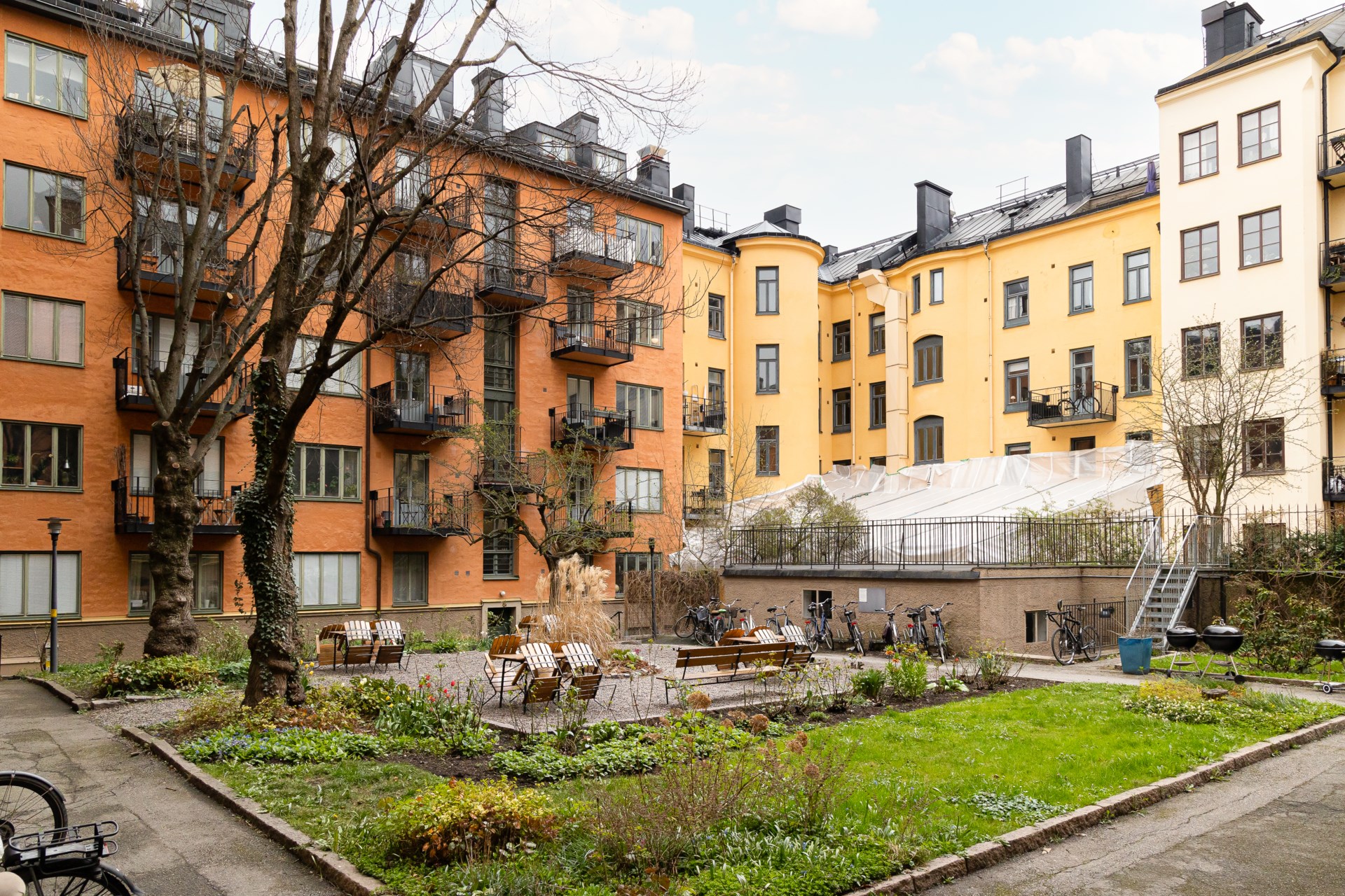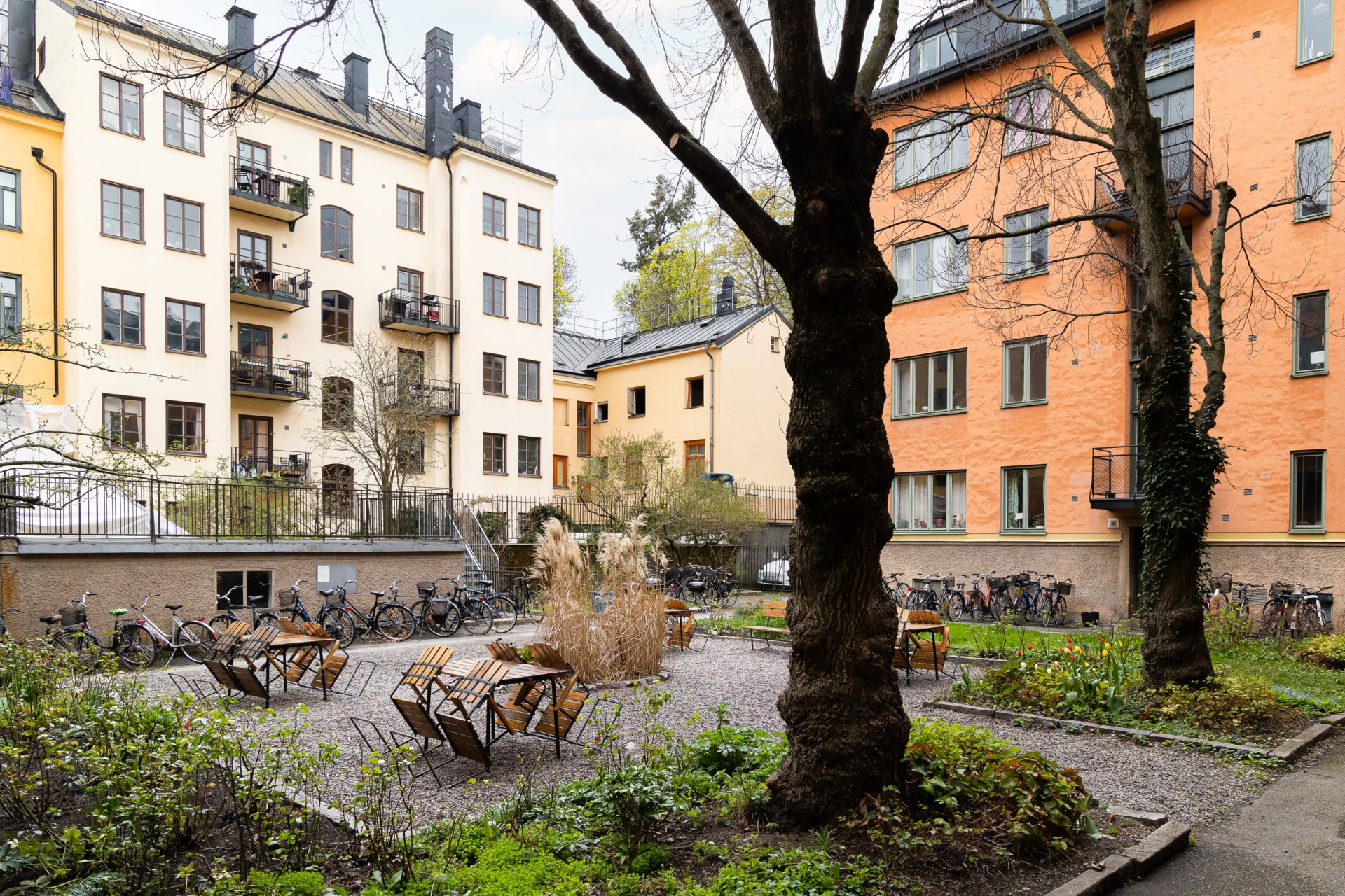 | Gemensamma utrymmen | Barnvagnsrum, cykelkällare, innergård med möbler och grill, källsorteringsrum och tvättstuga. Det finns fyra tvättstugor i källaren på Roslagsgatan 55. Tre av tvättstugorna bokas via bokningskalendern på hemsidan och en är ”akuttvättstuga” som inte är bokningsbar. Sommartid finns möjlighet till grillning på innergården, ett par grillar finns att använda. På innergården finns även trädgårdsmöbler. Bokning sker via hemsidan. |