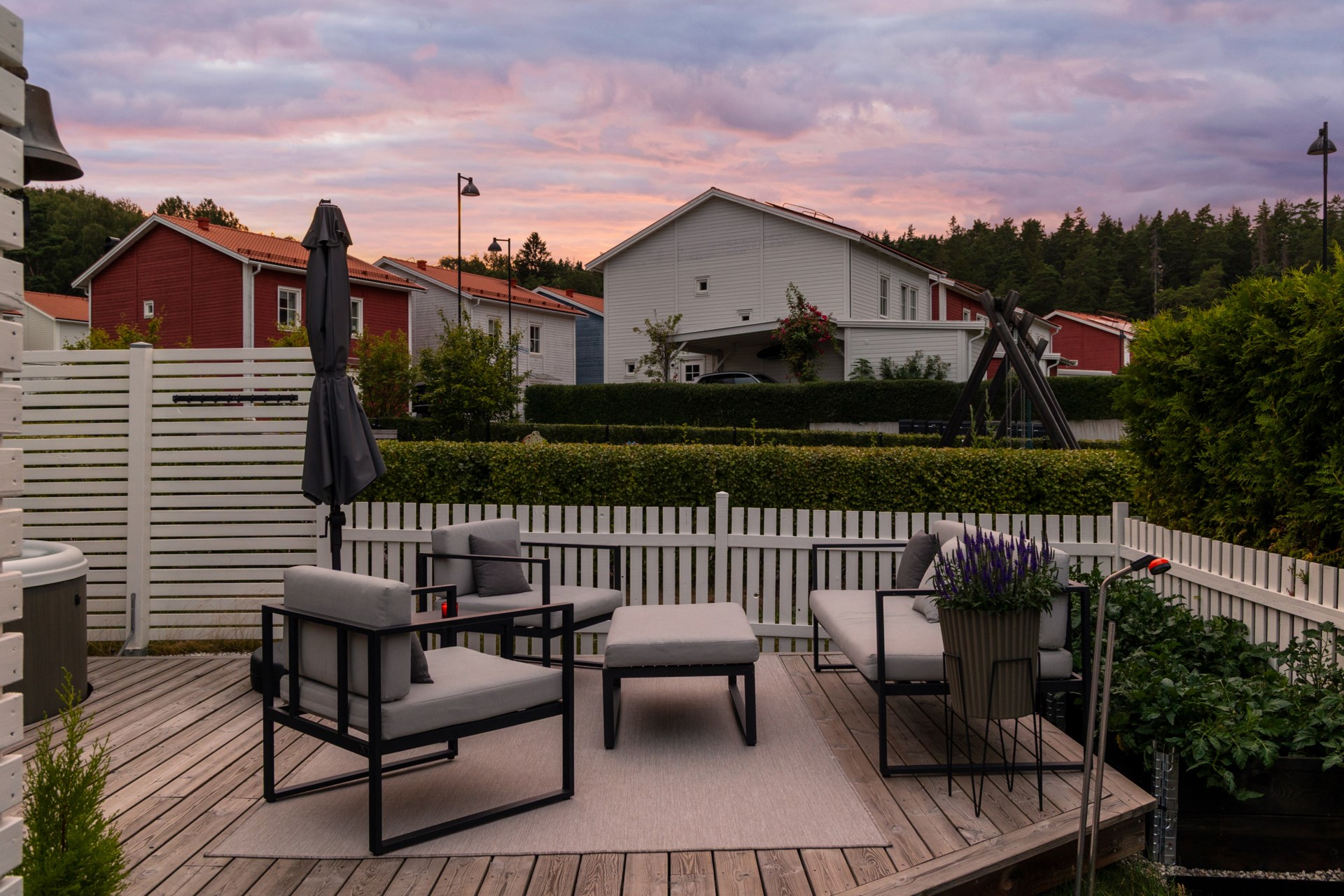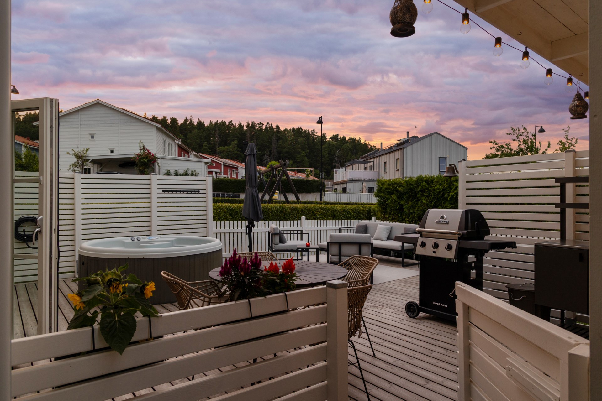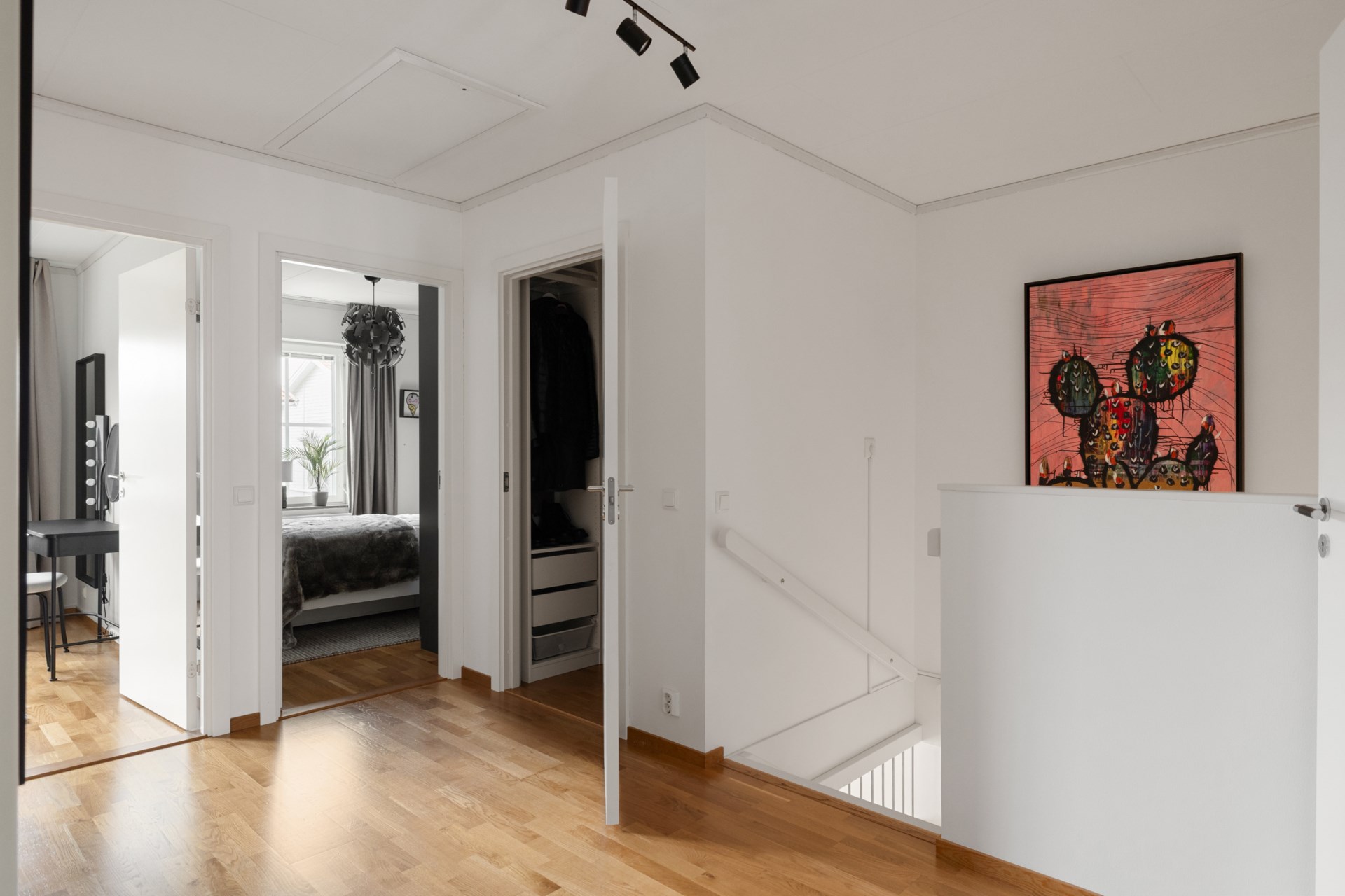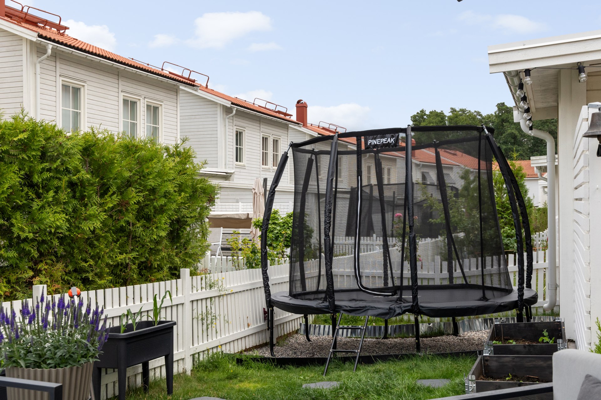 | Renoveringar | Hall Ommålat Nytt elfa-system med antracitgråinredning 200 x 228 cm Ny elfa måttbeställd skjutdörr spegelglas med svart metallinfattning Nedre plan Badrum Nytt handtag Ny förvaringsmöbel för handdukar och toalettartiklar Nytt duschset från Grohe Vardagsrum Ommålat Nya takskenor för gardinupphängning Tvättstuga Ommålat Nya dörrbeslag Nya handtag Trapphus Ommålat Ny belysning Övre plan allyta Ommålat Nya dörrhandtag till samtliga dörrar Sovrum 1 övre plan Ommålat Nya takskenor för gardinupphängning Nya persienner för extra mörkläggning Ny garderob 1 med inredning 50x43x236 cm Ny garderob 2 med inredning 50x43x236 cm Ny garderob 3 med inredning 50x43x236 cm Ny garderob 4 med inredning 50x43x236 cm Ny våningssäng Nora från Mio med förvaring 90/120-200 cm Sovrum 2 (Gästrum) Ommålat Nya takskenor för gardinupphängning Nya persienner för extra mörkläggning Ny garderob 1 med inredning 50x60x236 cm Övre plan badrum Nytt handtag Ny förvaringsmöbel för handdukar och toalettartiklar Ny duschvägg 90x200 cm Sovrum 3 övre plan (Master bedroom) Ommålat Nya takskenor för gardinupphängning Nya persienner för extra mörkläggning Ny garderob 1 med inredning 50x60x236 cm Ny garderob 2 med inredning 50x60x236 cm Ny garderob 3 med inredning 50x60x236 cm Ny garderob 4 med inredning 50x60x236 cm Ny garderob 5 med inredning 50x60x236 cm Sovrum 4 övre plan Ommålat Nya takskenor för gardinupphängning Nya persienner för extra mörkläggning Ny garderob 1 med inredning 100x60x236 cm Ny garderob 2 med inredning 50x60x236 cm Walk-in-closet övre plan Ommålat Ny garderob 1 med inredning 50x43x236 cm Ny garderob 2 med inredning 50x43x236 cm Ny garderob 3 med inredning 50x43x236 cm Ny garderob 4 med inredning 50x43x236 cm Ny garderob 5 med inredning 50x43x236 cm Ny garderob 6 med inredning 50x43x236 cm Nya krokar och nyckelskåp Utsida Huset professionellt rengjort och avtvättad av företag Altan 1 professionellt rengjort och avtvättad av företag Altan 2 professionellt rengjort och avtvättad av företag Carport professionellt rengjort och avtvättad av företag Staket fram- och baksida ommålade Kameror uppsatta vid entré, carport och husets baksida som kan navigeras med hjälp av app och bluetooth Trädgårdsbod Professionellt rengjort och avtvättad av företag Omgjort till varmisolerat förråd Nytt element Ny Lagerhylla 1 91x183x46 cm Ny Lagerhylla 2 91x183x46 cm Nytt verktygsskåp 1 svart metall med lås 100x190x40 cm Nytt verktygsskåp 2 svart metall med lås 100x190x40 cm Nytt elfa vintergarderobssystem 200x200 cm Nytt upphängningssystem för trädgårdsredskap Ny belysning Trädgård Nysådd gräsmatta Nya odlingspallkragar 4 st Nytt äppelträd och vinbärsbuske Utgrävning med anbelagd sjösten för stabilitet till ny studsmatta med skyddsnät Pinepeak 213x305 cm Nytt utekök Nya tillbehör till bubbelpool |