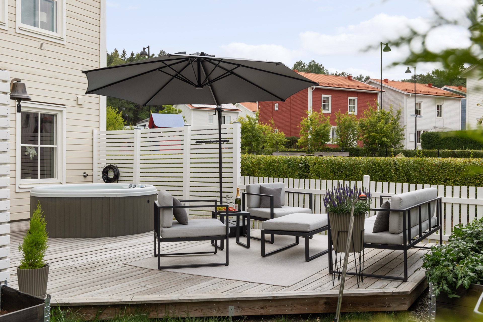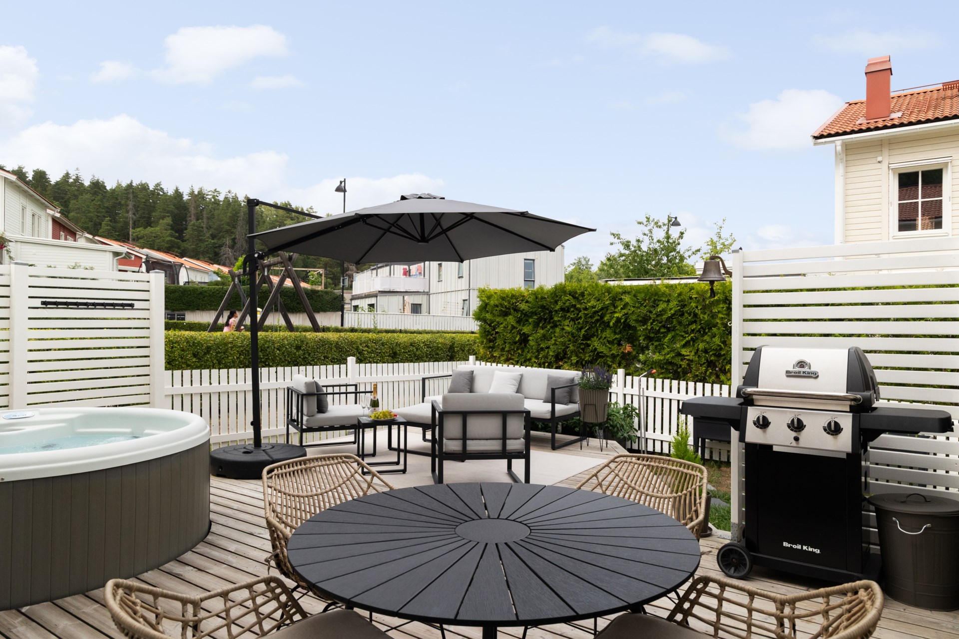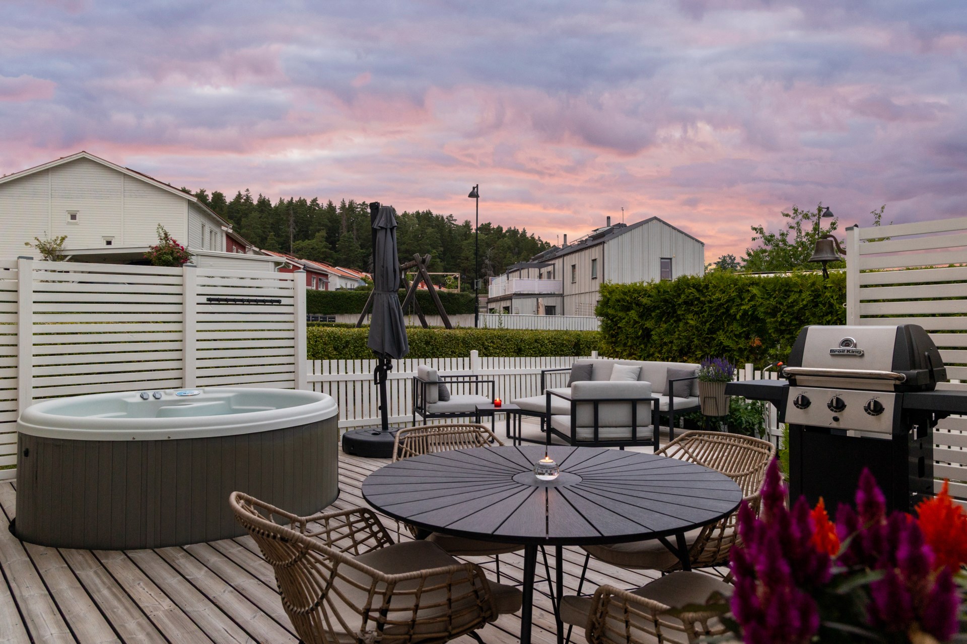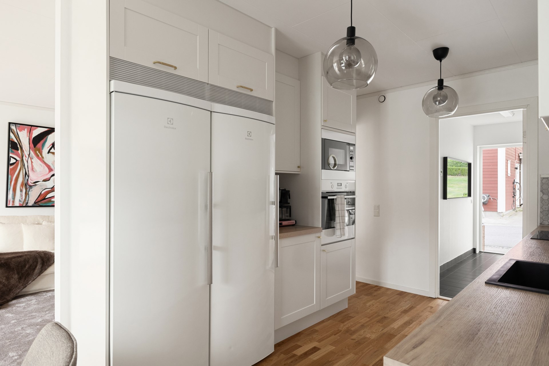 | Renoveringar | Hall Ommålat Nytt elfa-system med antracitgråinredning 200 x 228 cm Ny elfa måttbeställd skjutdörr spegelglas med svart metallinfattning Nedre plan Badrum Nytt handtag Ny förvaringsmöbel för handdukar och toalettartiklar Nytt duschset från Grohe Vardagsrum Ommålat Nya takskenor för gardinupphängning Tvättstuga Ommålat Nya dörrbeslag Nya handtag Trapphus Ommålat Ny belysning Övre plan allyta Ommålat Nya dörrhandtag till samtliga dörrar Sovrum 1 övre plan Ommålat Nya takskenor för gardinupphängning Nya persienner för extra mörkläggning Ny garderob 1 med inredning 50x43x236 cm Ny garderob 2 med inredning 50x43x236 cm Ny garderob 3 med inredning 50x43x236 cm Ny garderob 4 med inredning 50x43x236 cm Ny våningssäng Nora från Mio med förvaring 90/120-200 cm Sovrum 2 (Gästrum) Ommålat Nya takskenor för gardinupphängning Nya persienner för extra mörkläggning Ny garderob 1 med inredning 50x60x236 cm Övre plan badrum Nytt handtag Ny förvaringsmöbel för handdukar och toalettartiklar Ny duschvägg 90x200 cm Sovrum 3 övre plan (Master bedroom) Ommålat Nya takskenor för gardinupphängning Nya persienner för extra mörkläggning Ny garderob 1 med inredning 50x60x236 cm Ny garderob 2 med inredning 50x60x236 cm Ny garderob 3 med inredning 50x60x236 cm Ny garderob 4 med inredning 50x60x236 cm Ny garderob 5 med inredning 50x60x236 cm Sovrum 4 övre plan Ommålat Nya takskenor för gardinupphängning Nya persienner för extra mörkläggning Ny garderob 1 med inredning 100x60x236 cm Ny garderob 2 med inredning 50x60x236 cm Walk-in-closet övre plan Ommålat Ny garderob 1 med inredning 50x43x236 cm Ny garderob 2 med inredning 50x43x236 cm Ny garderob 3 med inredning 50x43x236 cm Ny garderob 4 med inredning 50x43x236 cm Ny garderob 5 med inredning 50x43x236 cm Ny garderob 6 med inredning 50x43x236 cm Nya krokar och nyckelskåp Utsida Huset professionellt rengjort och avtvättad av företag Altan 1 professionellt rengjort och avtvättad av företag Altan 2 professionellt rengjort och avtvättad av företag Carport professionellt rengjort och avtvättad av företag Staket fram- och baksida ommålade Kameror uppsatta vid entré, carport och husets baksida som kan navigeras med hjälp av app och bluetooth Trädgårdsbod Professionellt rengjort och avtvättad av företag Omgjort till varmisolerat förråd Nytt element Ny Lagerhylla 1 91x183x46 cm Ny Lagerhylla 2 91x183x46 cm Nytt verktygsskåp 1 svart metall med lås 100x190x40 cm Nytt verktygsskåp 2 svart metall med lås 100x190x40 cm Nytt elfa vintergarderobssystem 200x200 cm Nytt upphängningssystem för trädgårdsredskap Ny belysning Trädgård Nysådd gräsmatta Nya odlingspallkragar 4 st Nytt äppelträd och vinbärsbuske Utgrävning med anbelagd sjösten för stabilitet till ny studsmatta med skyddsnät Pinepeak 213x305 cm Nytt utekök Nya tillbehör till bubbelpool |