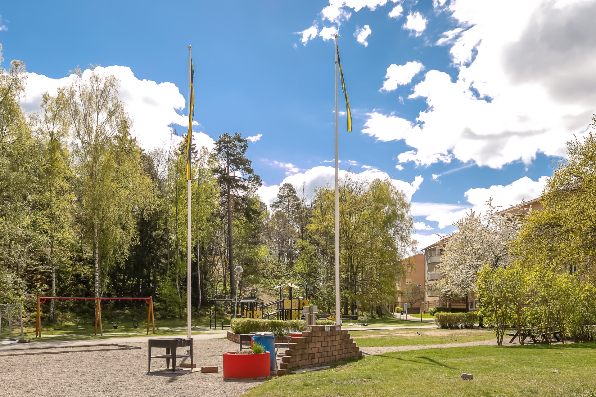 | Om föreningen | Tre Källor är en HSB Bostadsrättsförening i Norra Botkyrka, söder om Stockholm belägen uppe på Eriksbergsåsen. Centralt beläget med närhet till Bygg och möbelvaruhus , ICA Maxi, Hallunda Centrum, Bussar and T-bana i direkt närhet. Hiss finns i samtliga portar. |
