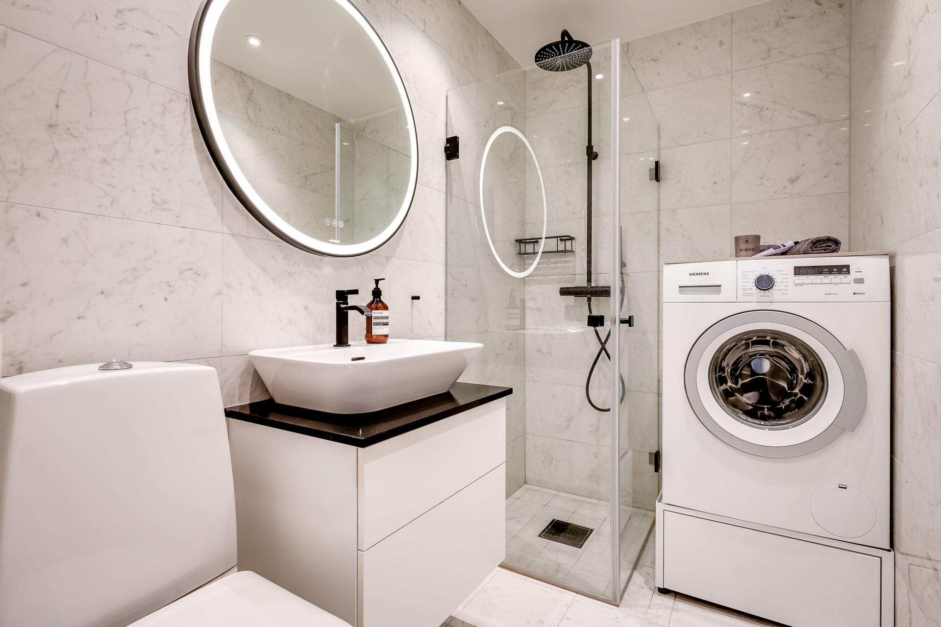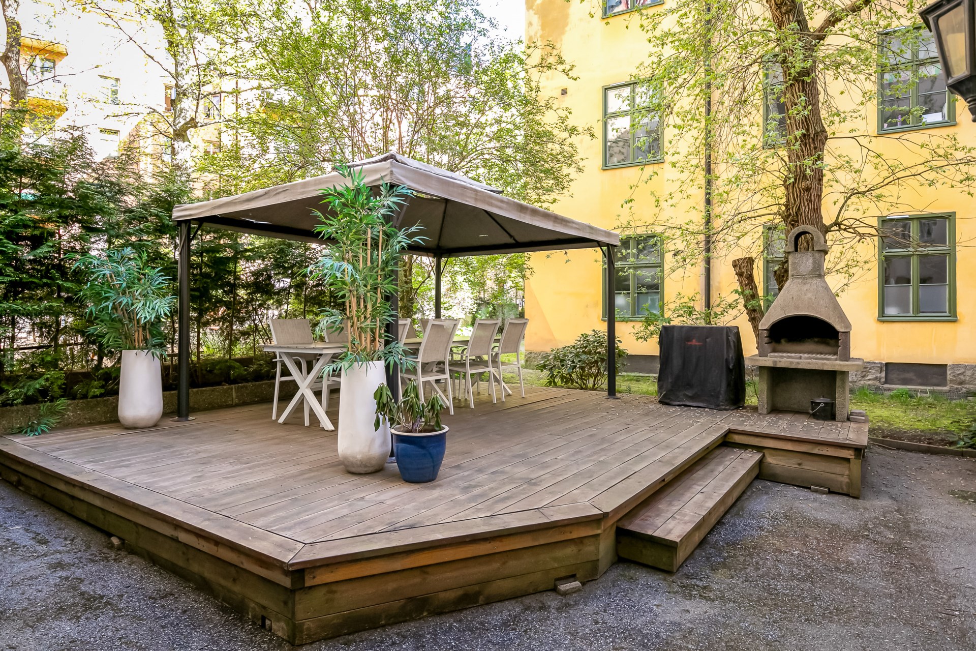 | Gemensamma utrymmen | Bastu Tvättstuga (två tvättmaskiner, en grovtvättmaskin, torkskåp, torktumlare och mangel) Lägenhetsförråd Tekniska utrymmen Cykelrum Barnvagnsförråd (otätat) Cykelställ samt innergård |