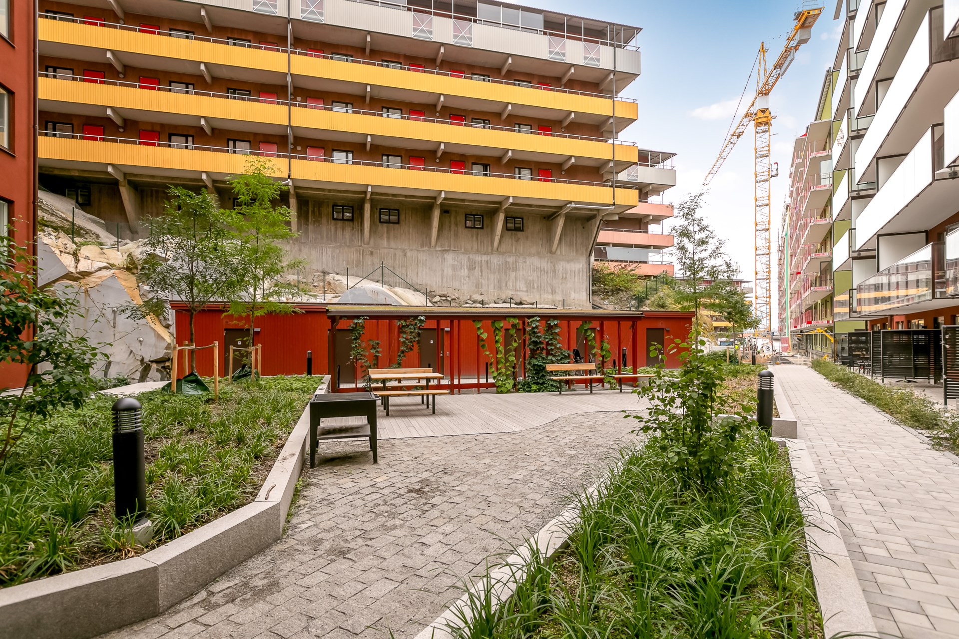 | Gemensamma utrymmen | Gård, cykelrum, barnvagnsrum och miljörum med sopsortering. |