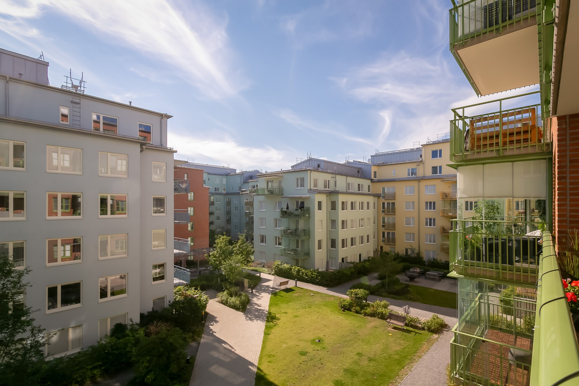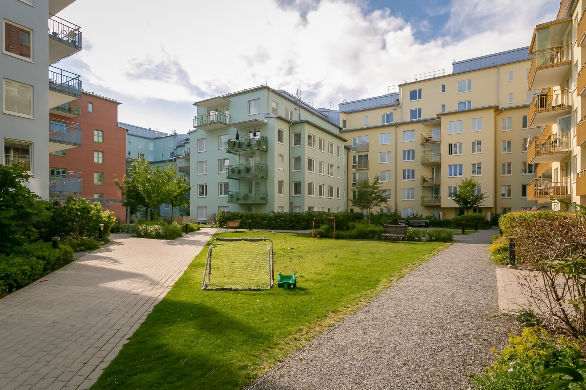 Gemensamma utrymmen Miljörum och cykelrum. Rullstol och barnvagnsförvaring finns i gårdsplanet.