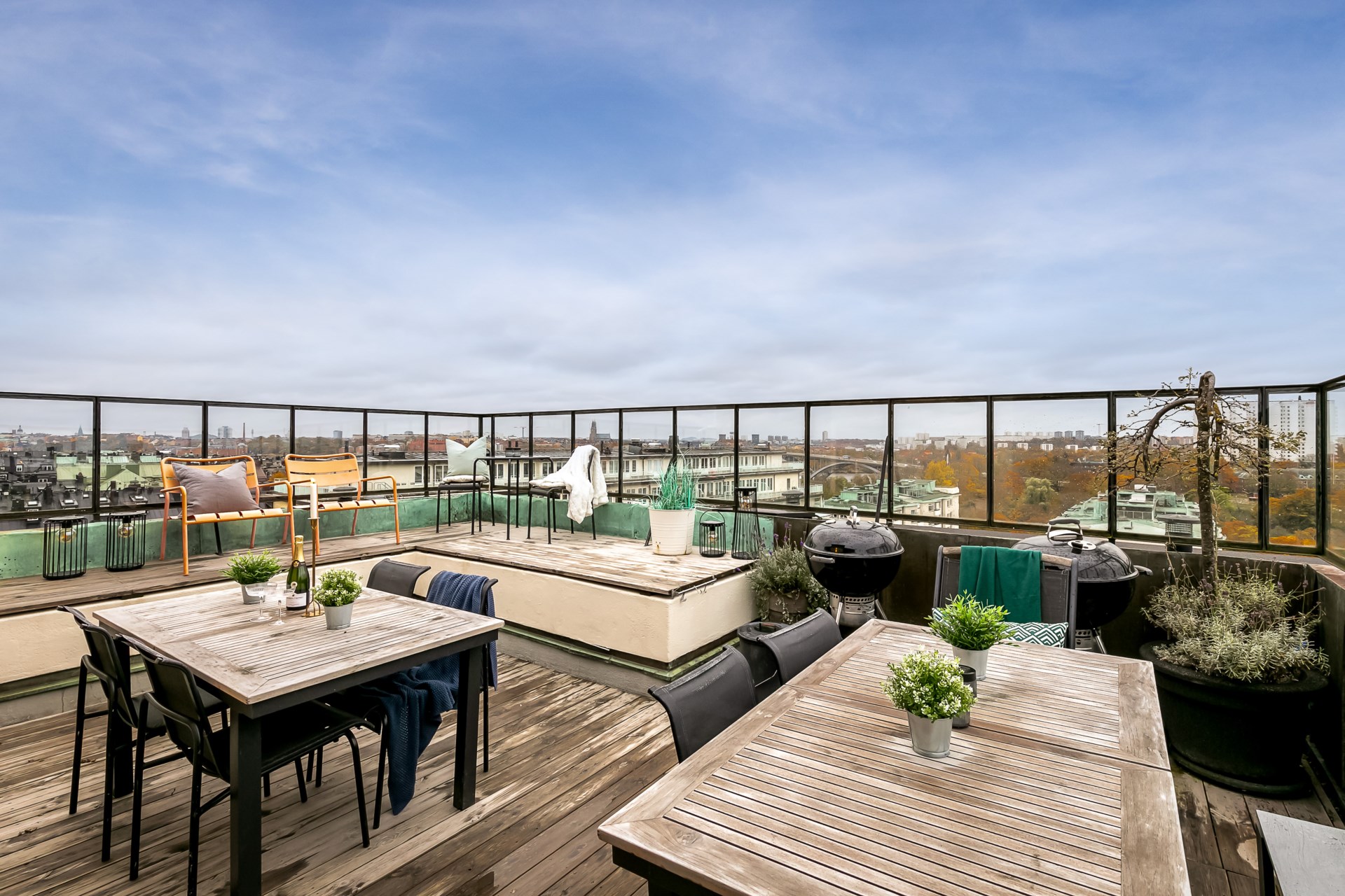 | Gemensamma utrymmen | Föreningen har en takterrass med utsikt över Stockholm. Terrassen är möblerad med bord, stolar samt grill. Gästlägenhet med sängplatser för tre personer finns att hyra till en kostnad av 100 kr per natt. Tvättstuga finns i källaren med fyra moderna tvättmaskiner, torktumlare, torkskåp, mangel samt torkrum med torkfläkt. Cykelförråd finns i källaren. Barnvagnsrum finns i huset. Soprum ligger precis utanför porten. |