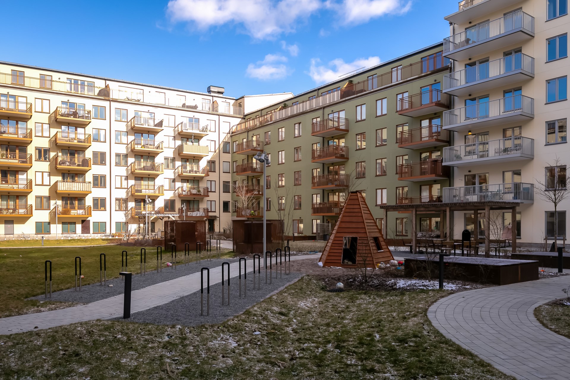 Gemensamma utrymmen Miljörum, förråd, cykelrum, barnvagns-och rullstolsrum.