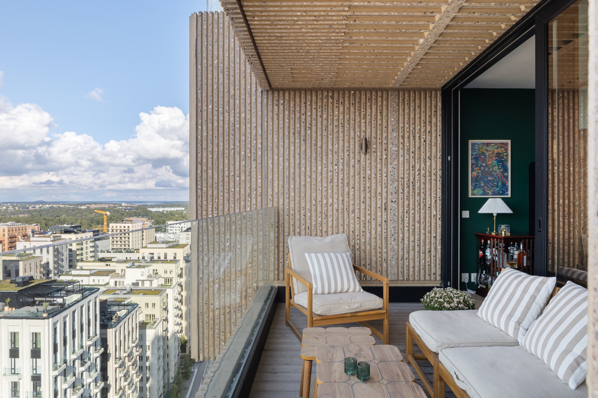 | Gemensamma utrymmen | Biosalong, gästmatsal och gästlägenhet. Bokas mot en avgift. Relaxavdelning med bastu, duschar, omklädningsrum och relaxdel. Gym och yogarum. Cykel- och barnvagnsrum med access via hiss. Miljörum med anslutning till stadens sopsugsanläggning och återvinningskärl. Ej grovsopor. |