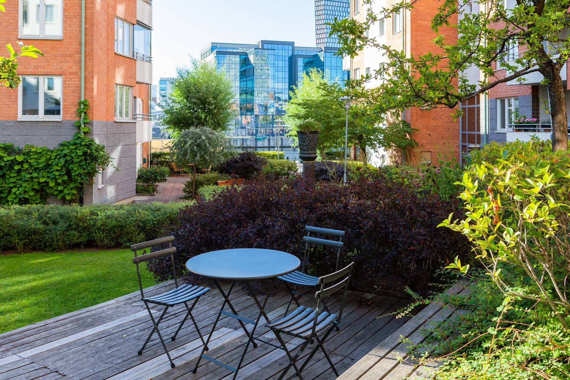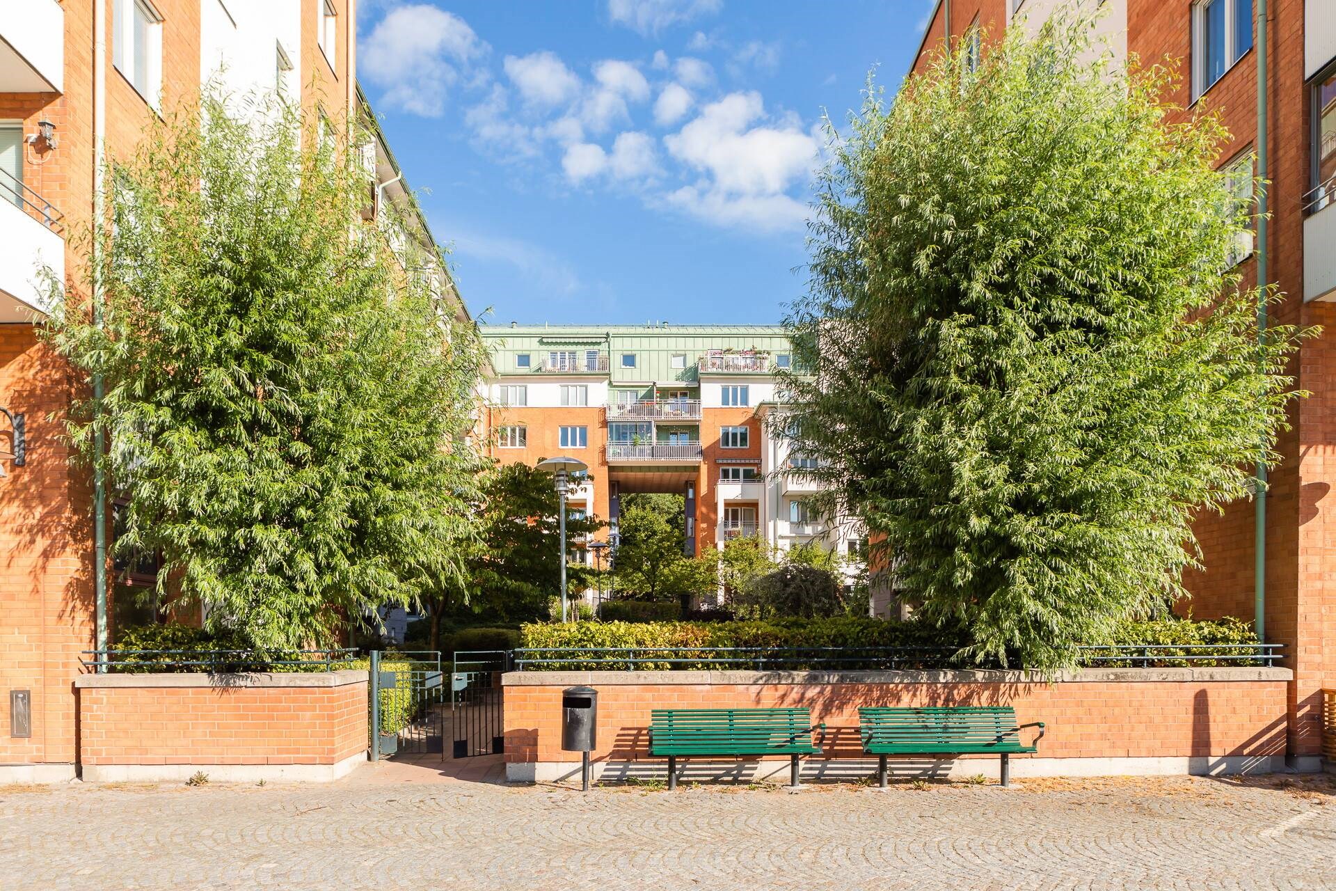 | Gemensamma utrymmen | Gemensam lokal med plats för 50 personer vid Ljustergränd 5 med fönster mot kanalen som kan hyras för ca 300 kr/dygn. Övernattningslägenhet med 6 bäddar på Dörjgränd 4 som kan hyras för ca 300 kr/natt. Det finns även fyra fullutrustade tvättstugor varav en grovtvättstuga, varje tvättstuga har två bokningsbara tvättrum med tvättmaskin, torktumlare och torkskåp samt tvättfat. I föreningen finns även flera cykelförråd och barnvagnsrum. I föreningen finns två innergårdar med lekplats och väl underhållen trädgård med trädgårdsmöbler som kan nyttjas av alla boende. |
