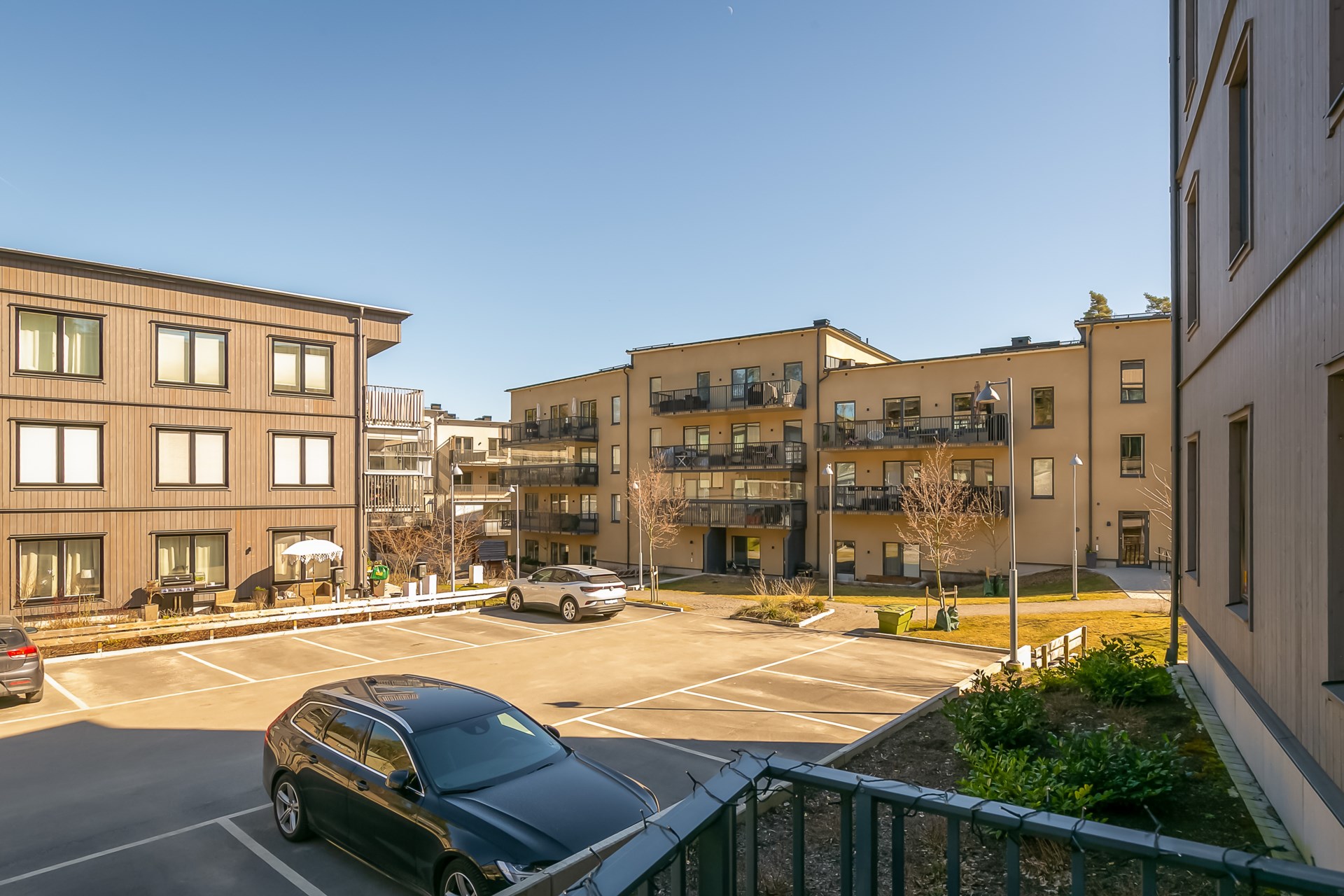 | Parkering | Bilparkering sker på den gemensamma gården, det finns 14 parkeringar varav en HCP för Brf Vega View i Haninge, 4st av dessa parkeringar är placerade på grannfastigheten. Inom fastigheten finns även cykelparkeringar utomhus. Det finns parkering med separat kö. |