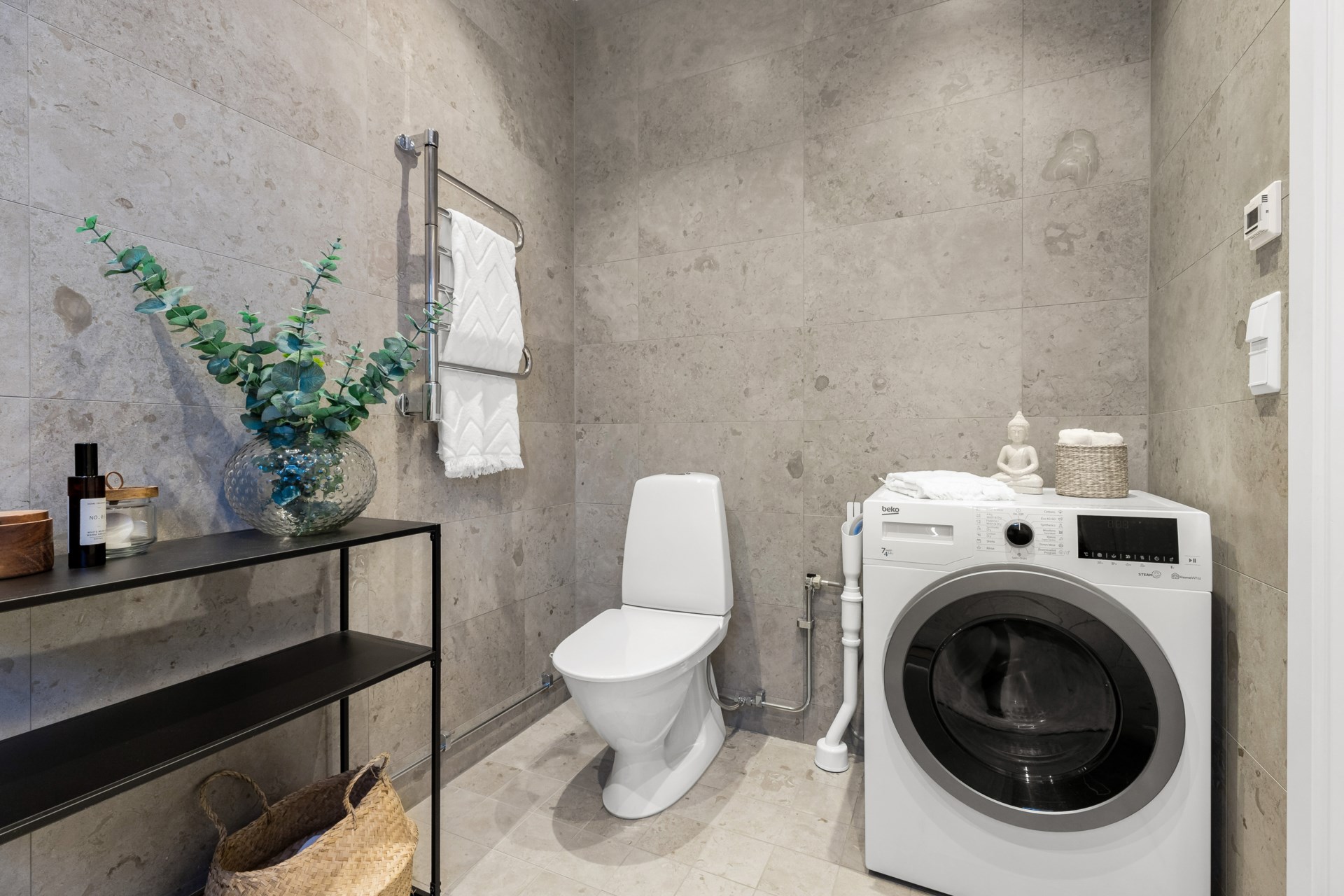 | Gemensamma utrymmen | Tvättstuga med 2 tvättmaskiner, torktumlare, mangel och torkskåp. Separat torkrum med värmefläkt och kondensavfuktare. Lokal, cykel- och barnvagnsrum samt toalett. |
