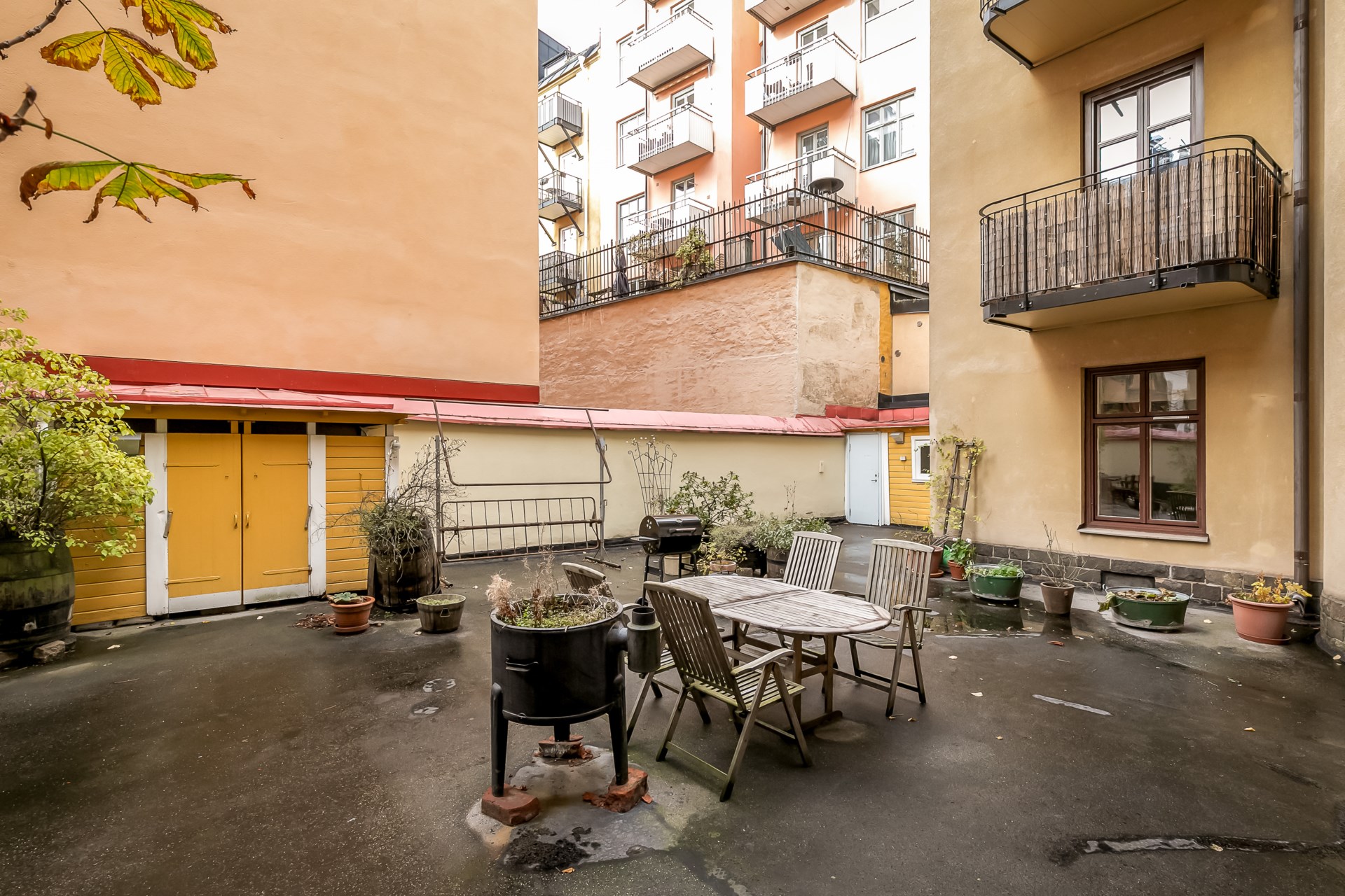 | Gemensamma utrymmen | Föreningen har en fin gemensam innergård med sittgrupper. Det finns en tvättstuga i källaren utrustad med 2 tvättmaskiner, torkskåp och torktumlare. I källaren finns även cykelförråd och soprum. |
